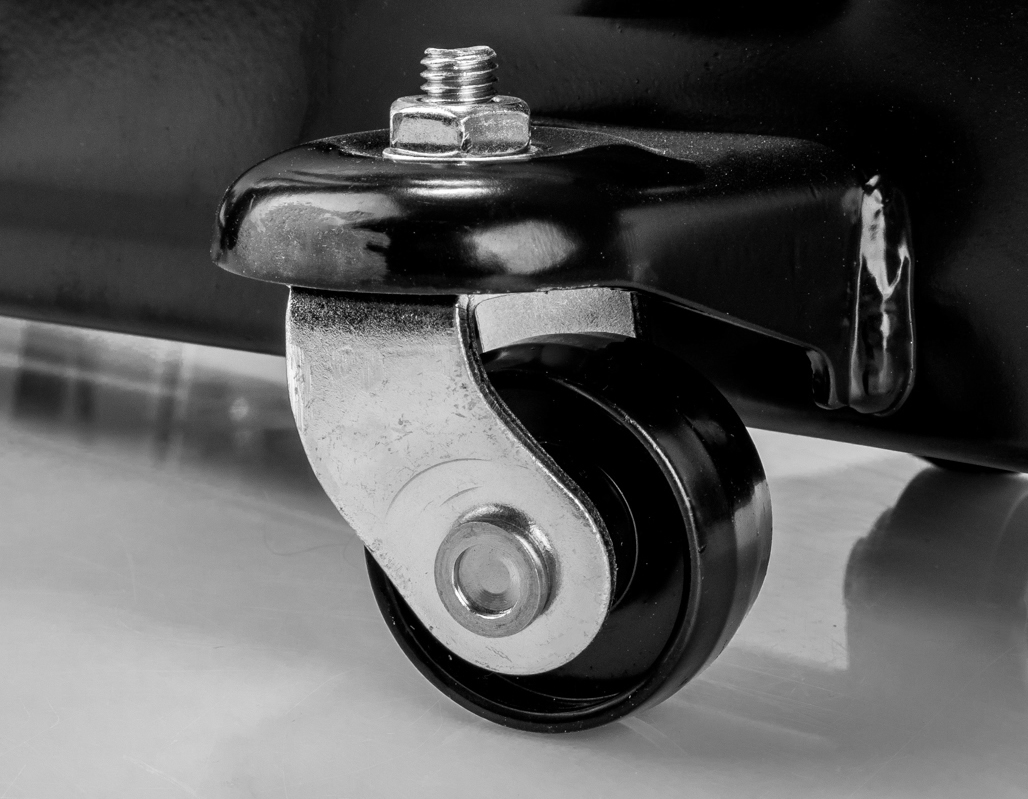 Ліфт оснащений двома поворотними коліщатками та двома жорсткими колесами, завдяки яким ви зможете легко маневрувати пристроєм, щоб адаптувати його до ваших поточних потреб і точно розташувати під шасі