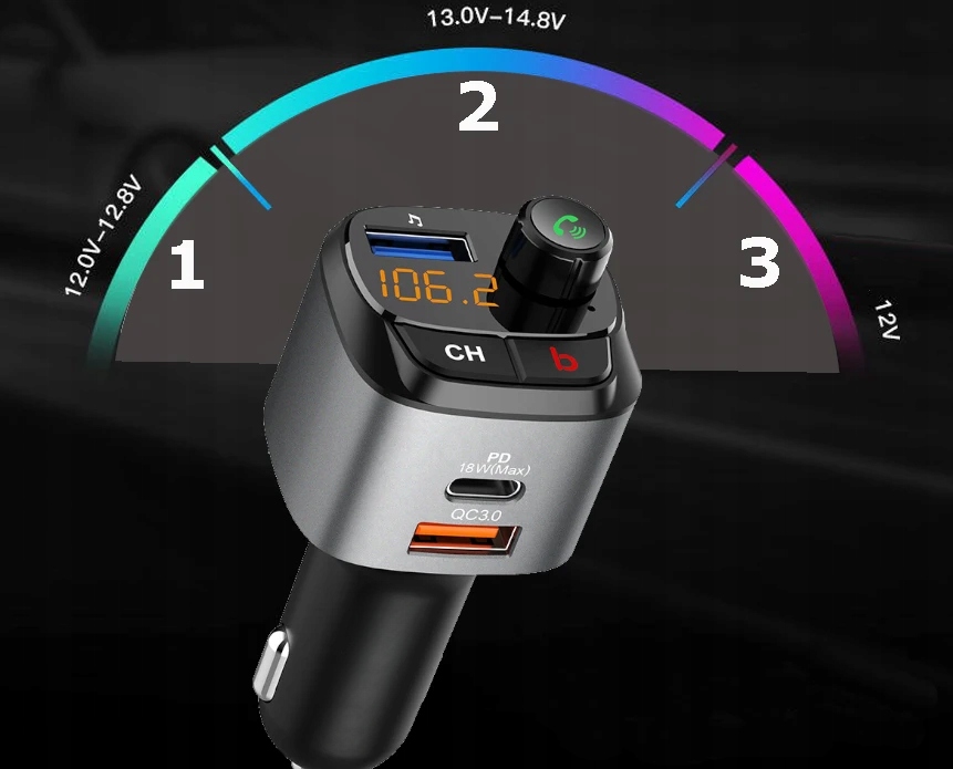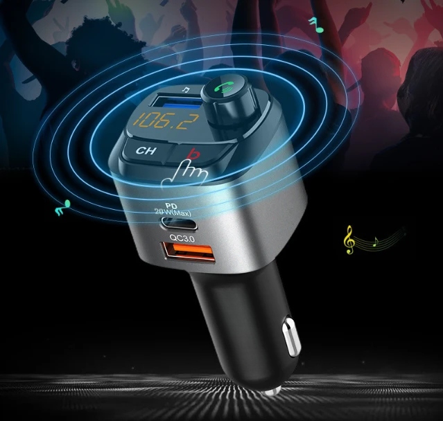 FM АВТОМОБІЛЬНИЙ НАБІР ТЕЛЕФОНІВ BT5.0 3xUSB QC3.0 ПІДСИЛЕННЯ НИЗЬКИХ ЧАСОВ