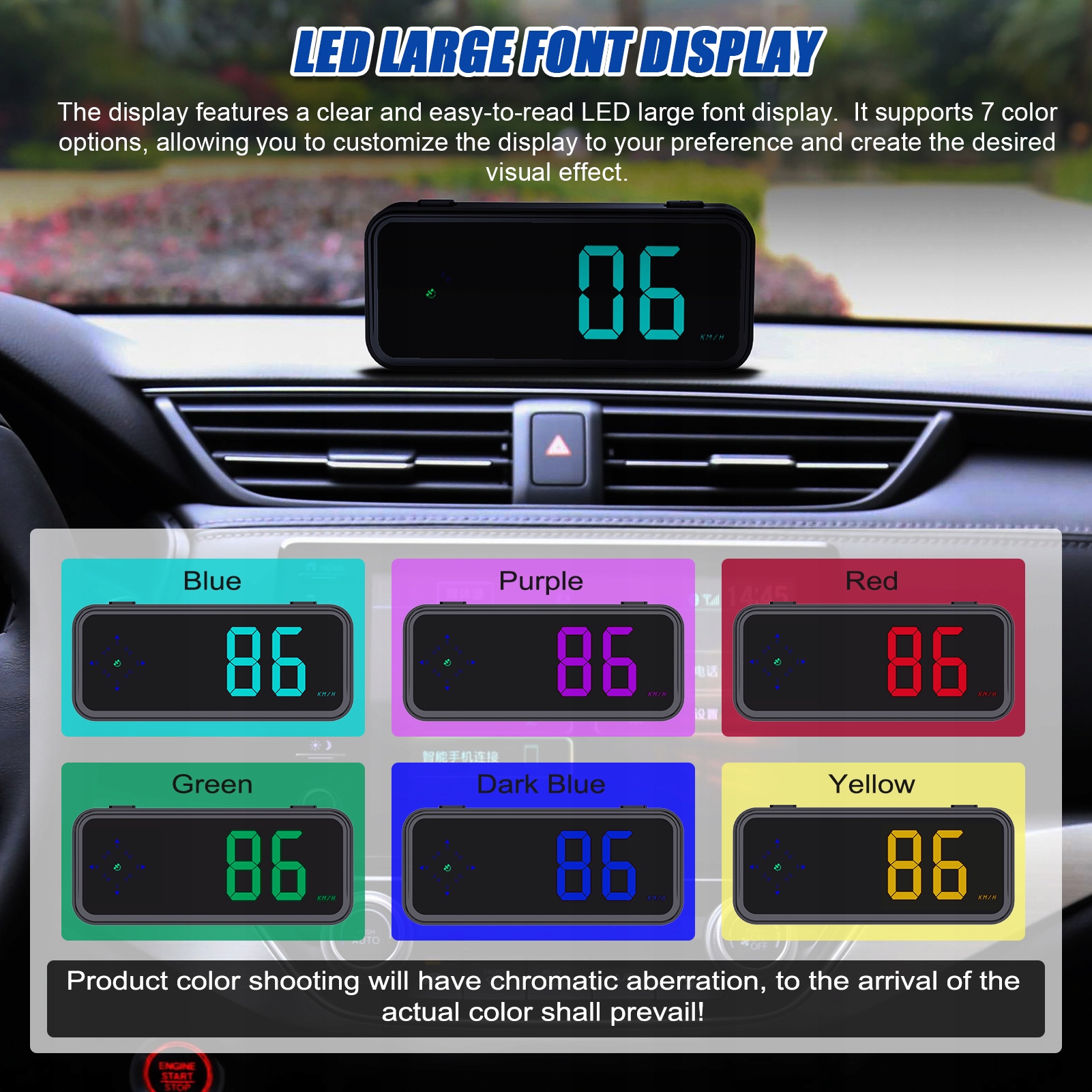 3. Великий світлодіодний шрифт: дисплей має чіткий і легкий для читання великий світлодіодний дисплей. Він підтримує 7 варіантів кольорів, що дозволяє налаштувати дисплей відповідно до ваших уподобань і створити бажаний візуальний ефект.