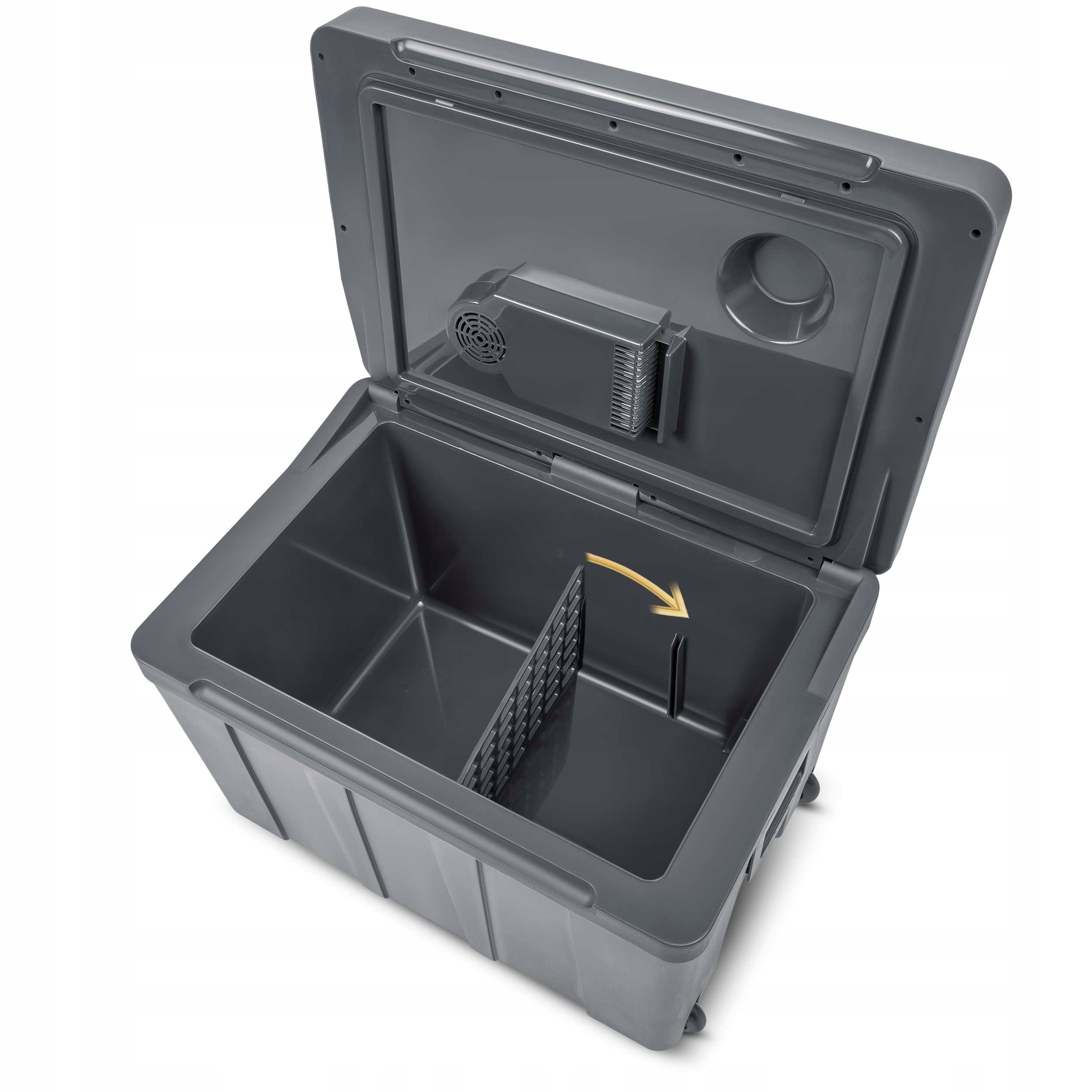 Дорожній холодильник - ідеально підходить для пляжу, Завдяки двом вбудованим вентиляторам продукти всередині камери будуть рівномірно охолоджуватися.