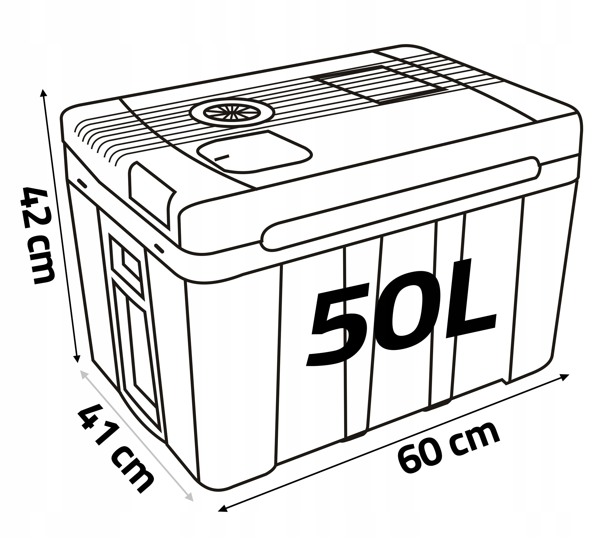 - Він має велику місткість 50 л, що дозволяє зберігати велику кількість їжі та напоїв.