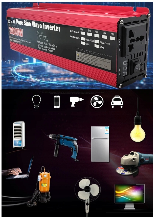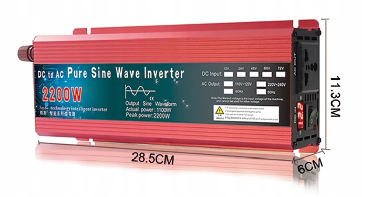 ✅Автомобільний перетворювач 12 В на 230 В, чиста синусоїда 1100 Вт/2200 Вт