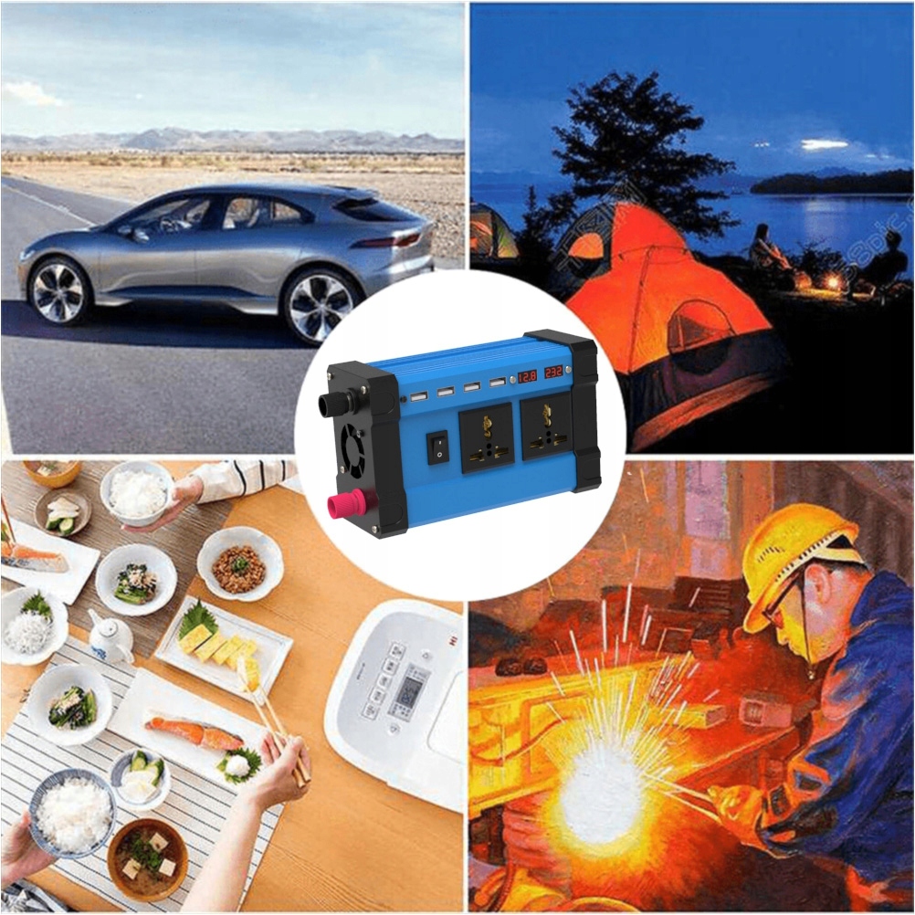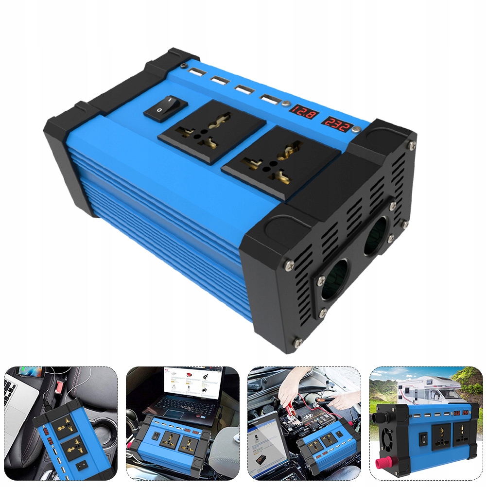 ✅Це автомобільний інвертор із 4 портами USB і 2 розетками змінного струму.