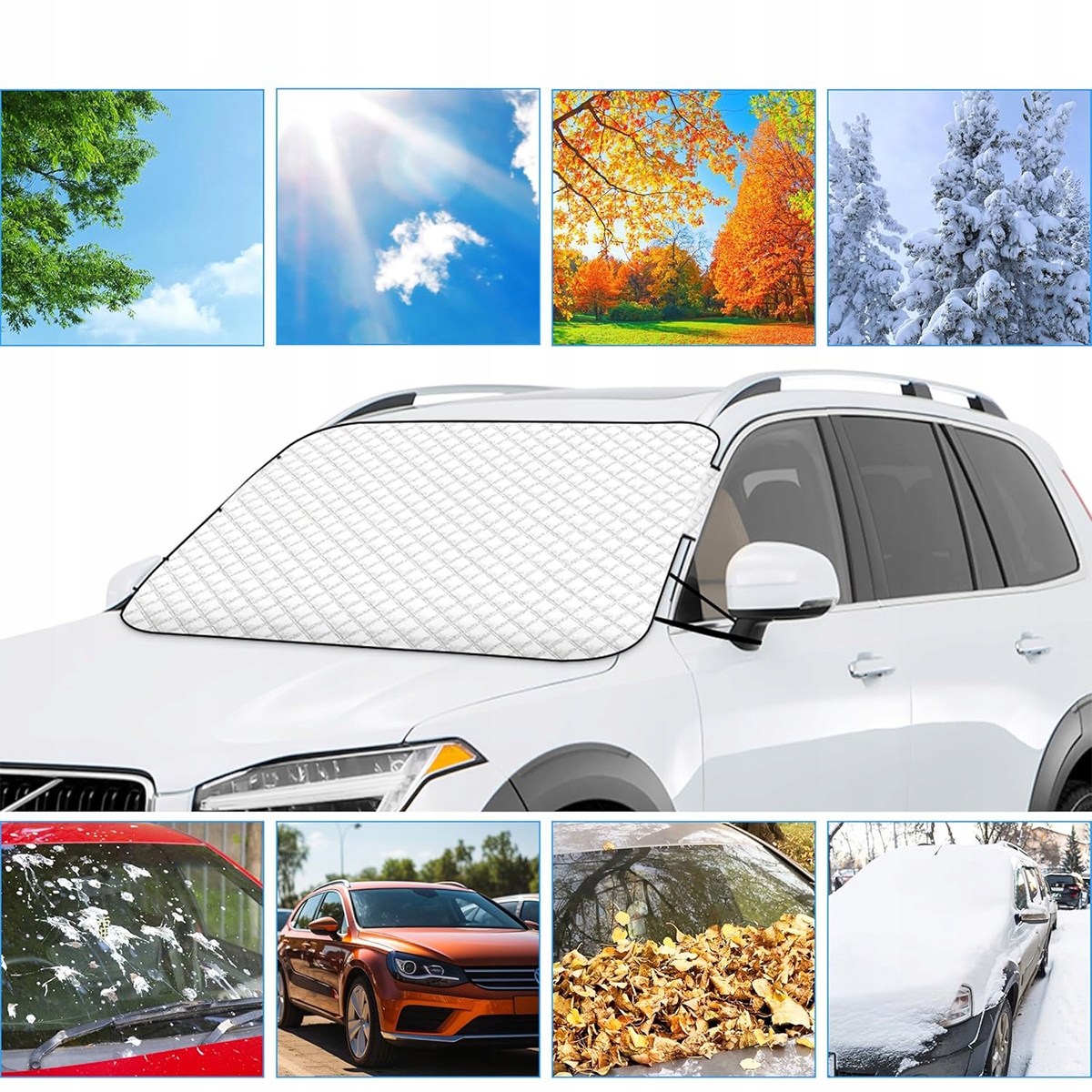 💎ЛІТО ТА ОСІНЬ: Сонцезахисний штор блокує 99% ультрафіолетового випромінювання спекотним літом, зберігає прохолоду в салоні автомобіля, запобігає старінню компонентів внутрішнього обладнання та захищає зону склоочисника від закриття з гілками чи опалим листям.