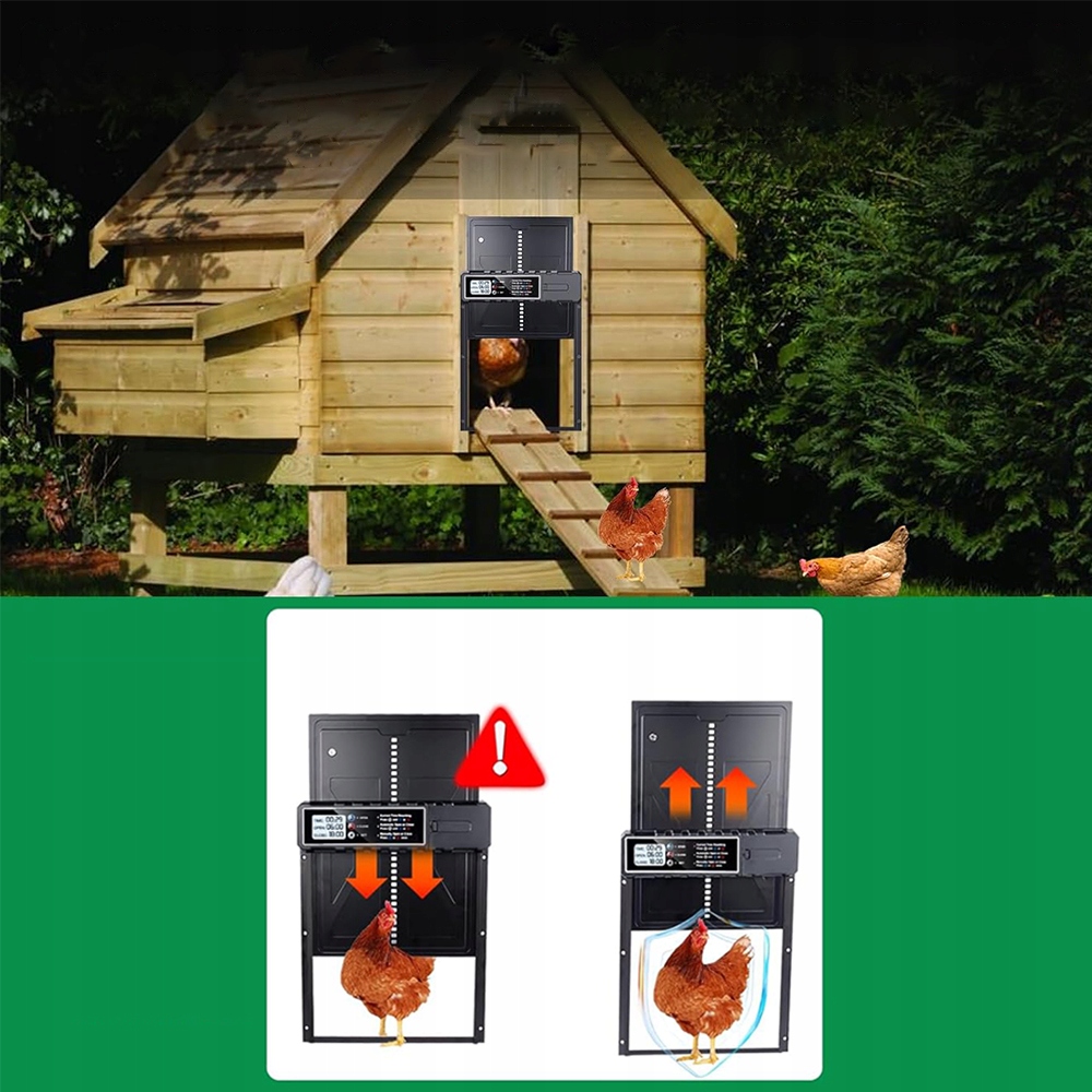 🐤 Просунута технологія датчиків виявляє найменші перешкоди і негайно припиняє процес закриття, щоб забезпечити найкращий захист для ваших курей. Будьте спокійні, вони добре захищені.