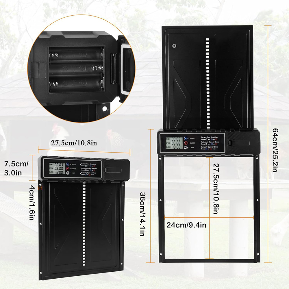 Автоматичні двері до курки з часом/ручним режимом. Анти -Засіска РК -стійкий до погодних умов