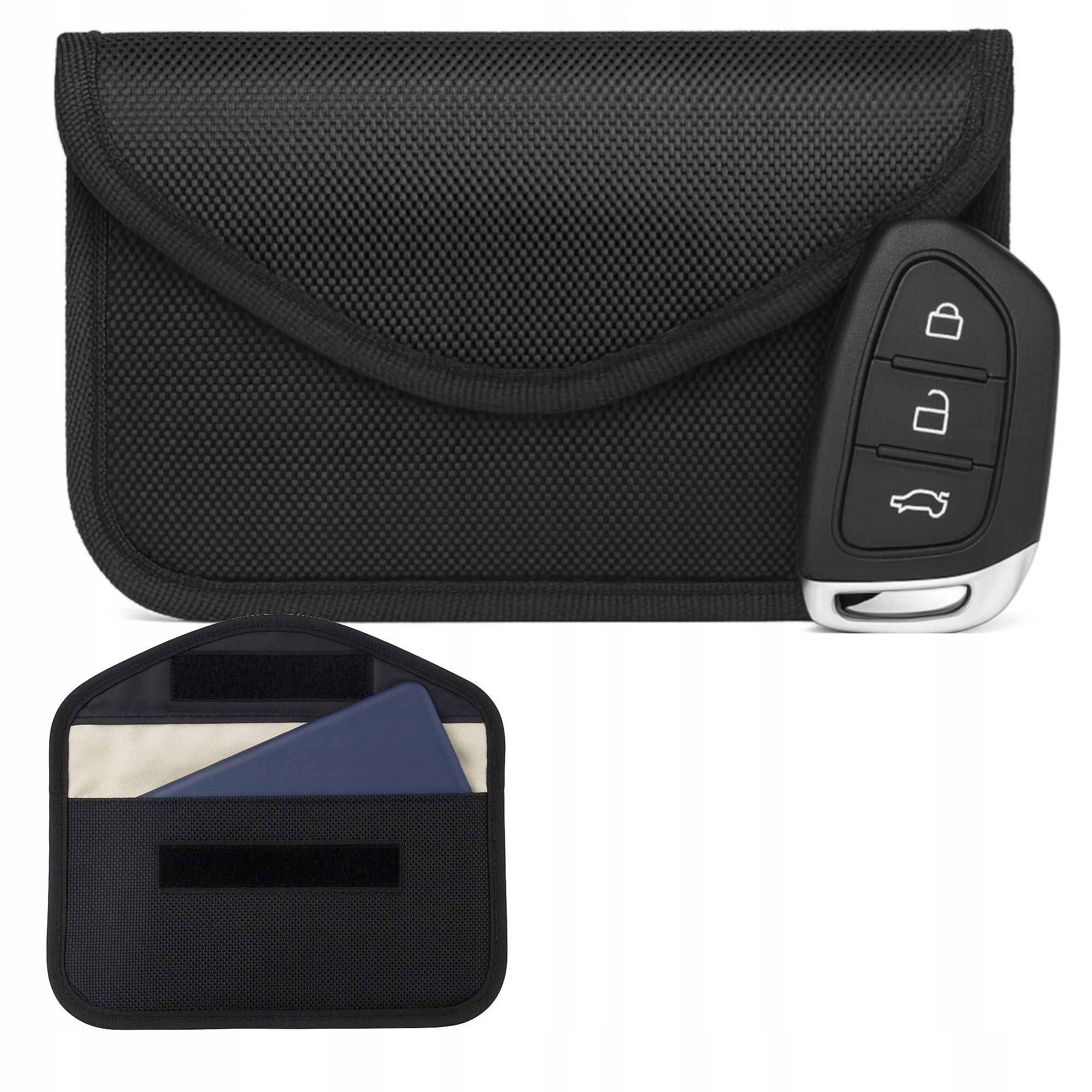 Просто помістіть ключ/картку у відділення для замка, і все – спеціальний шар, що блокує сигнал ключа, захистить від несанкціонованого зчитування та захоплення автомобіля. Футляр настільки ефективний, що автомобіль не розпізнає ключ, навіть якщо він усередині автомобіля!