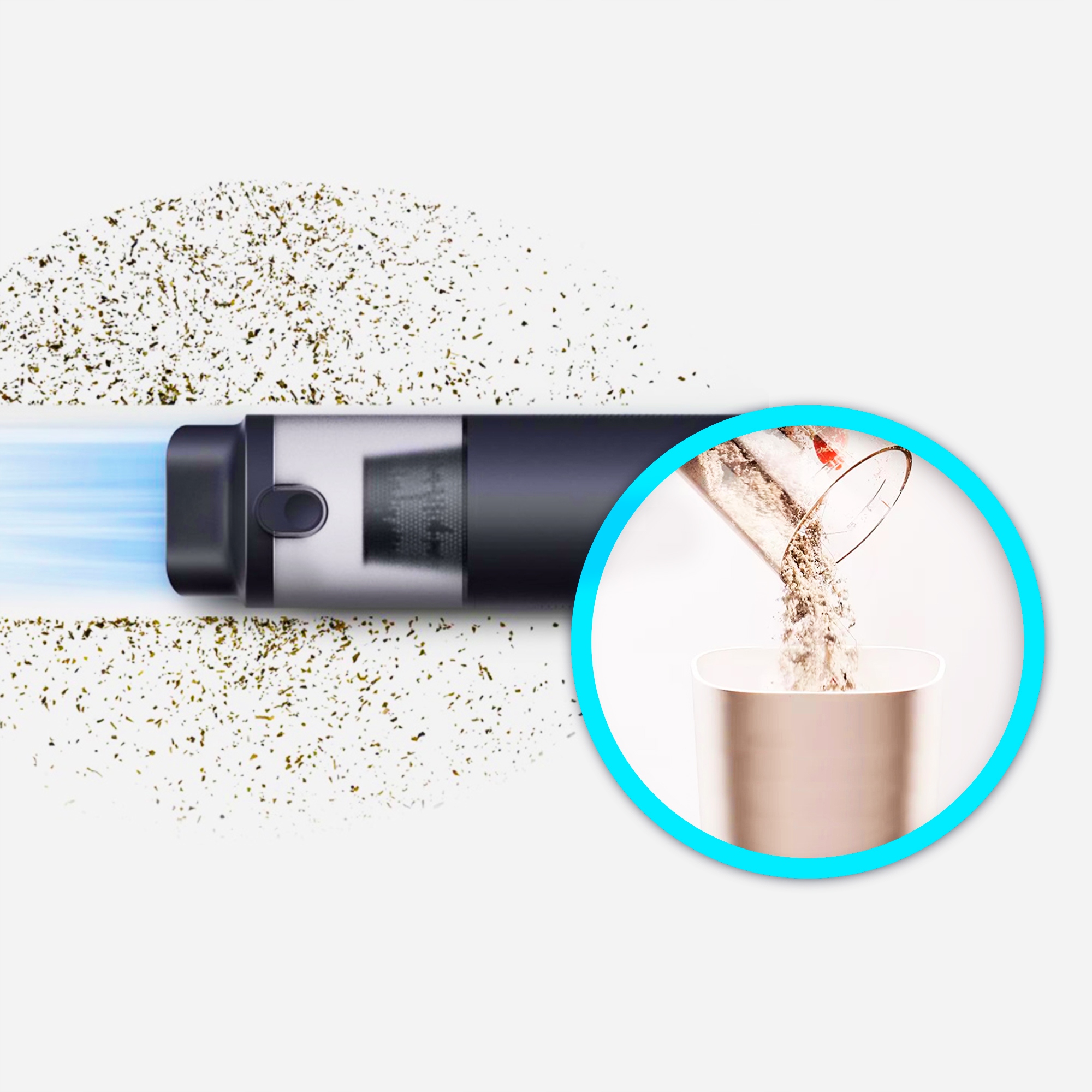 Чудова внутрішня структура та можливість працювати від двох літієвих батарей ємністю 2500 мАг роблять ручний бездротовий пилосос без кабелю живлення, що дозволяє зручно збирати пил з кожного кутка транспортного засобу, що дозволяє утримувати його в чистоті .