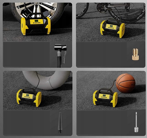 Компресор 12 В дозволяє накачувати колеса транспортних засобів, матраци, ігрові м'ячі, понтони тощо.