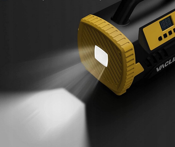 Ліхтарик, розташований збоку від компресора, ідеально підходить для накачування шин у темряві.