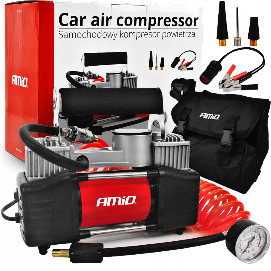Міцний, металевий, двопоршневий компресор з манометром. Компресор призначений для накачування коліс, м'ячів, понтонів, басейнів та іншого, завдяки трьом різним наконечникам клапанів, що входять до комплекту. Він може впоратися з великими колесами автомобілів 4x4 - SUV - Van - Truck - Camping