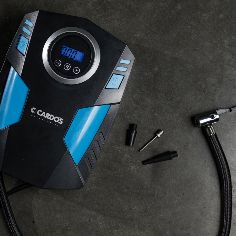 Автомобільний компресор CARDOS AA406 з РК-дисплеєм є практичним і ефективним пристроєм для накачування автомобільних шин, мотоциклів, велосипедів і спортивного і туристичного спорядження.