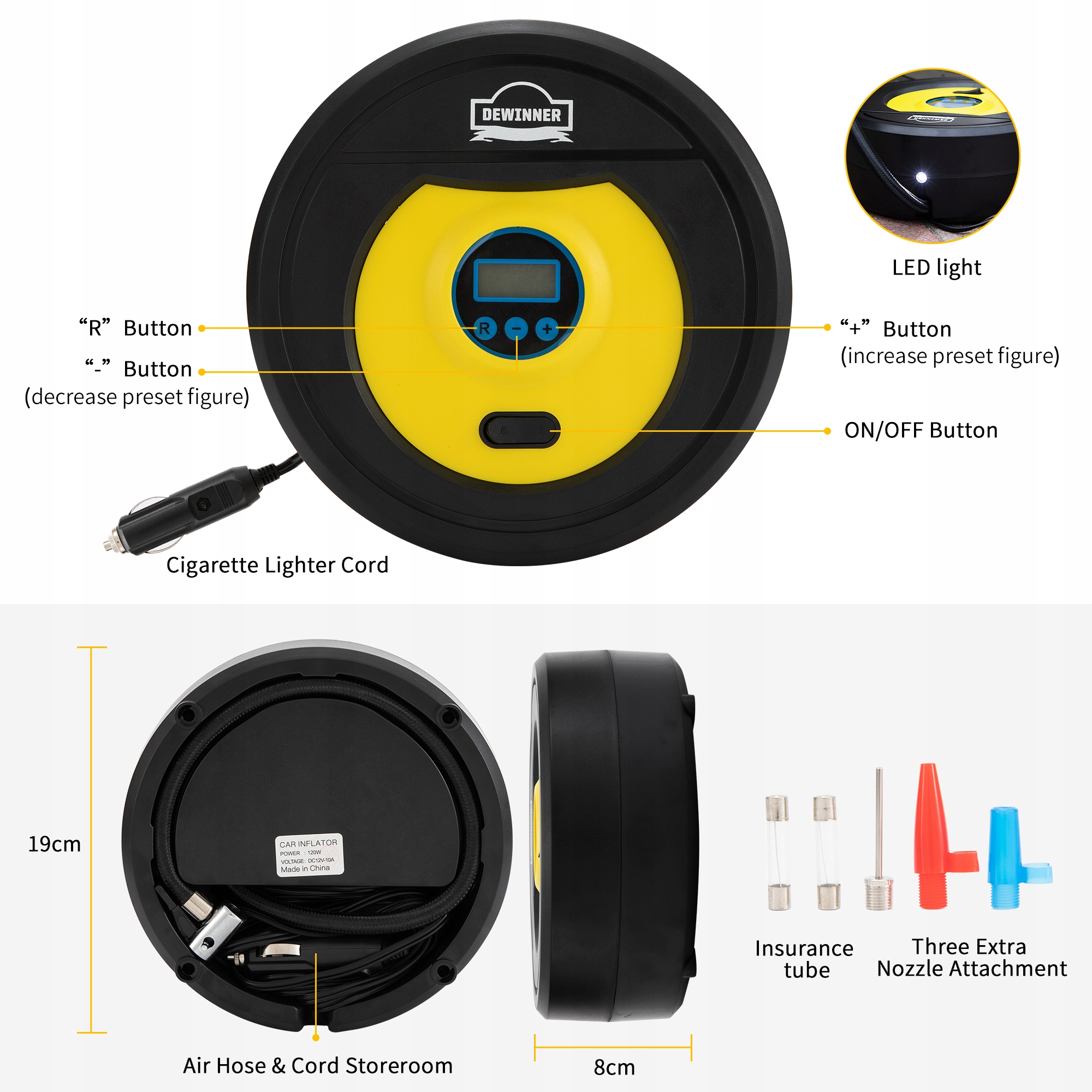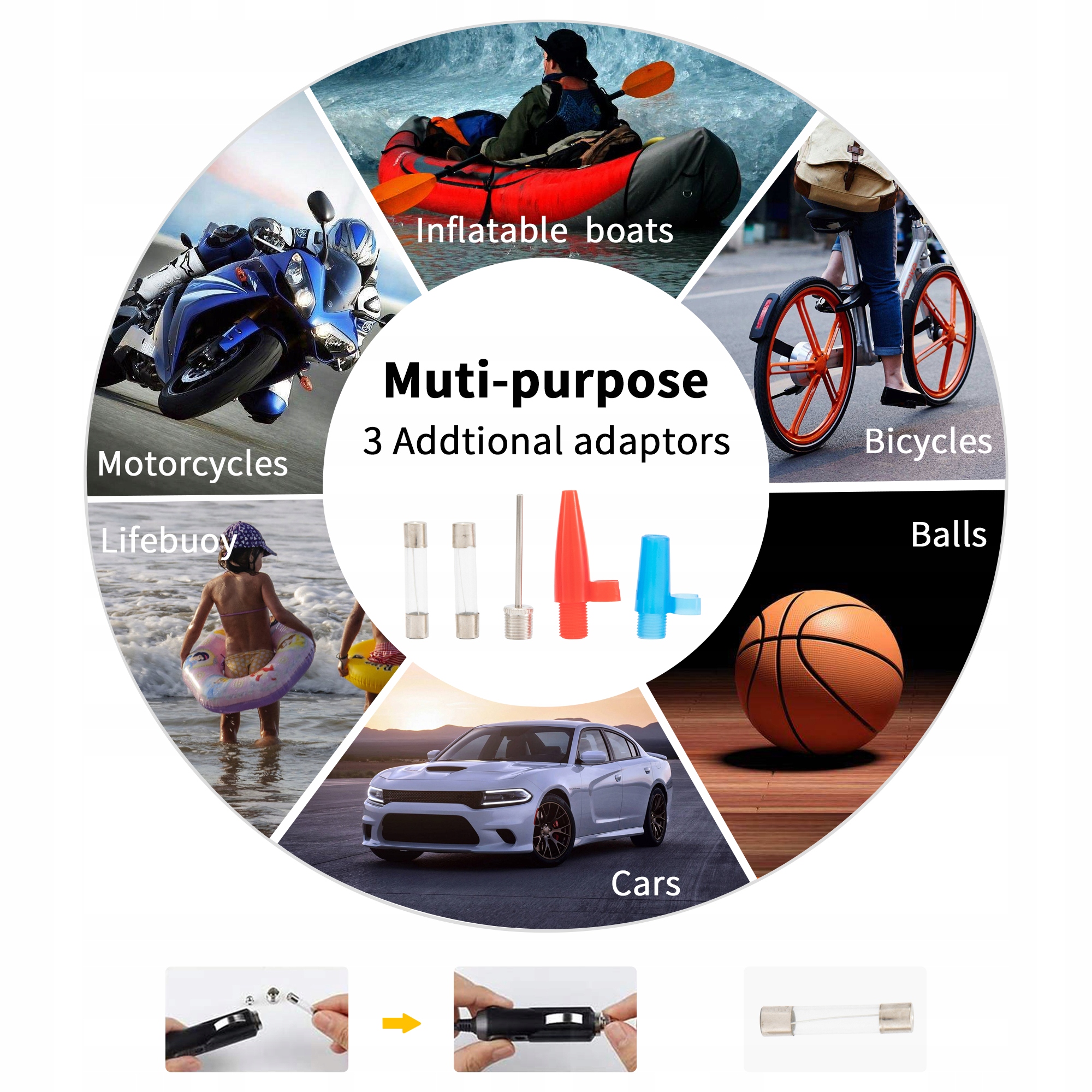 - Функція: для автомобільних шин, велосипедів, кемперів та інших надувних автомобілів