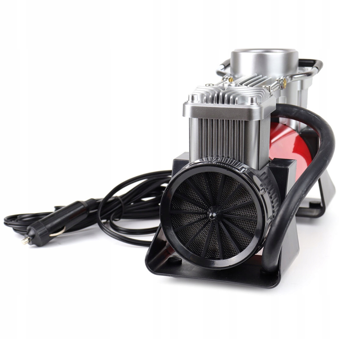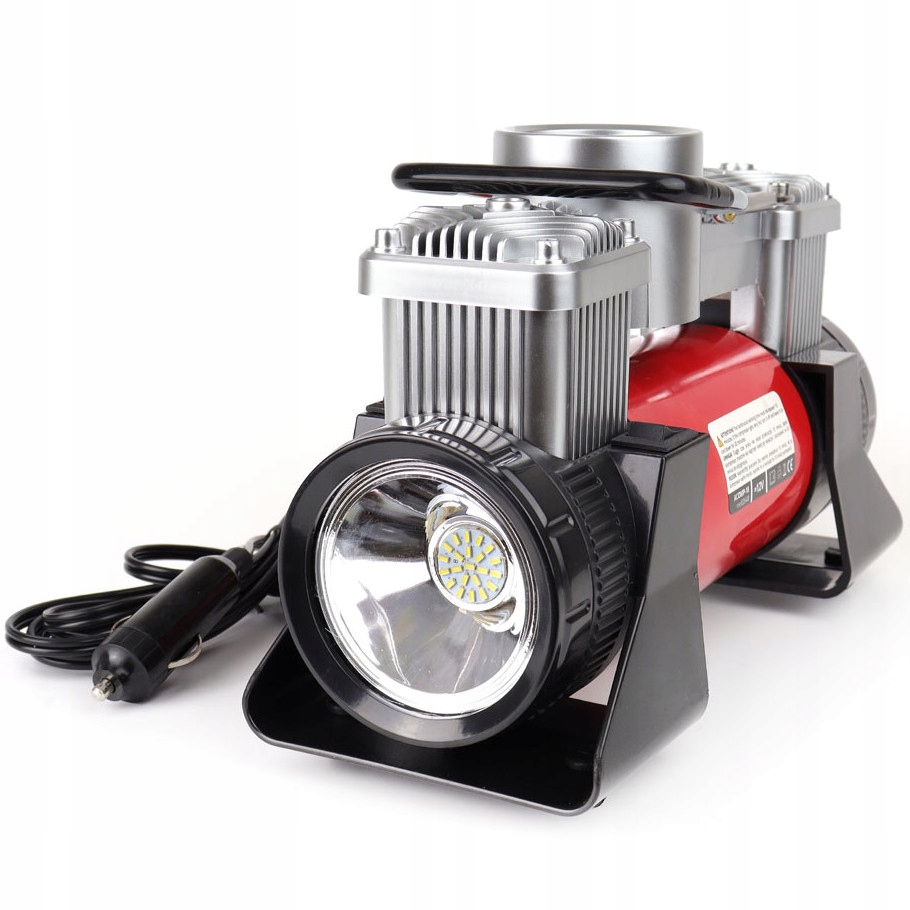 Ми пропонуємо надійний, добре зробленийкомпресор зі світлодіодною ЛАМПОЮ 250 Вт. Максимальний тиск, який він може створити, становить10 БАР / 150 PSI. Враховуючи розміри, має велику відстань від наконечника насоса до розетки 12В, до 5 метрів (довжина кабелю - 3м, довжина шланга - 2м). Завдяки широкому оснащенню ви зможете легко накачати не тільки свій автомобіль, мотоцикл, велосипед, а й матраци, м’ячі, надувні іграшки тощо.