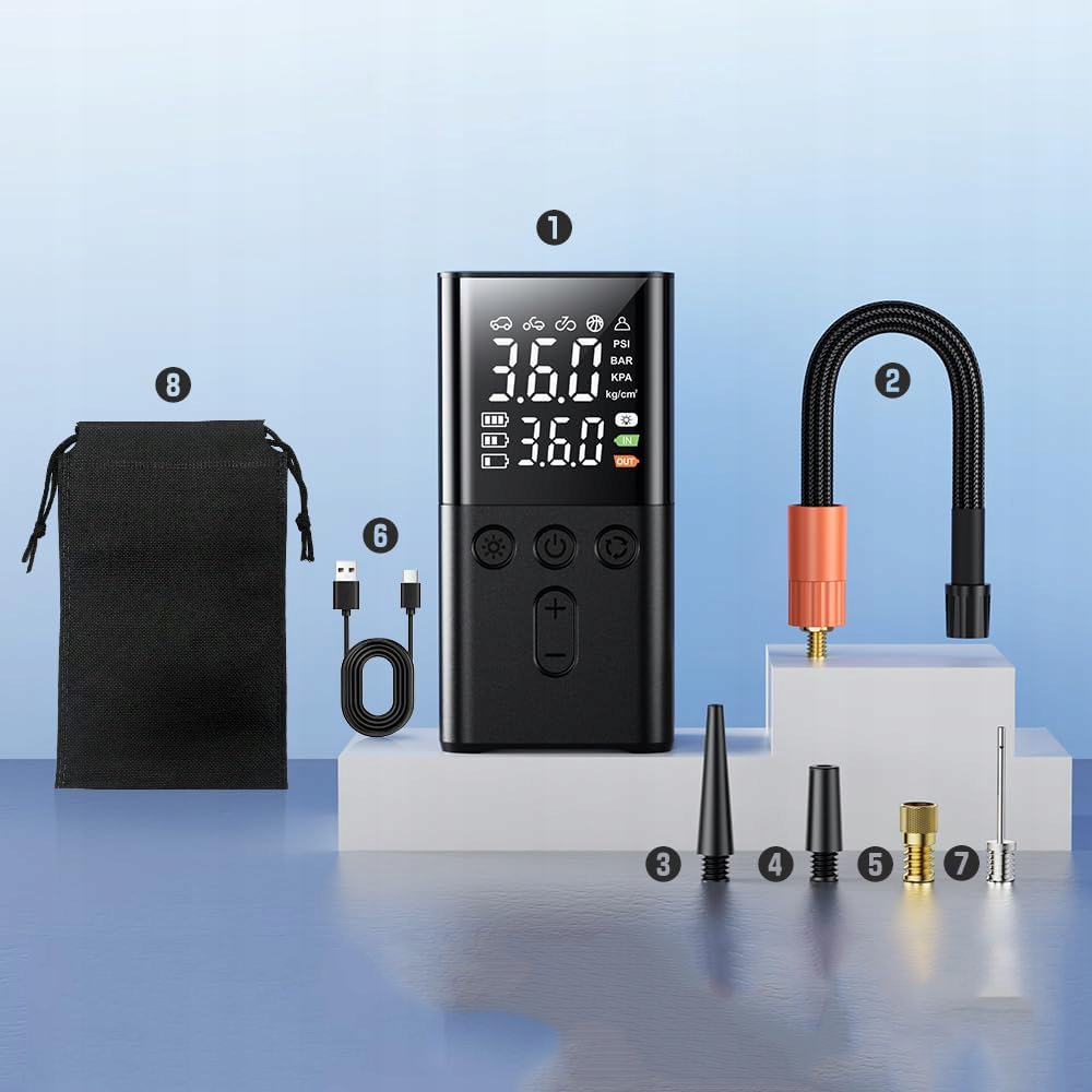 - Насос електричної шини має великий РК -екран з цифровим дисплеєм, тому ви можете чіткіше побачити режим накачування, тиск тиску та тиск у шині.