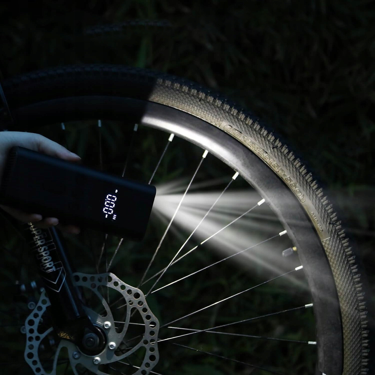 - ⚡Електричний велосипедний пневматичний насос оснащений функцією ліхтарика, який покращує видимість уночі, а також може використовуватися як світло для технічного обслуговування.