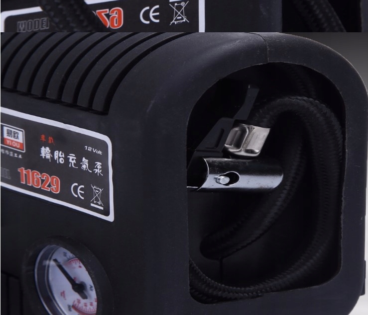 Потужний компресор з точним манометром з напругою живлення 12В. Призначений для накачування коліс і камер, оснащених клапаном автомобілів, мотоциклів і велосипедів, а також - за допомогою змінних наконечників - матраців, понтонів, м'ячів.