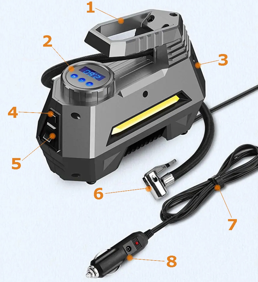 ⭐️Повітряний компресор із функцією ліхтарика, що живиться від роз’єму прикурювача.
