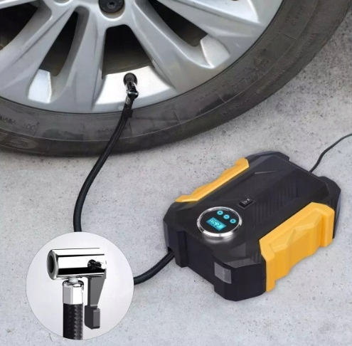 Портативний електричний насос для шин на 12 В з РК-дисплеєм і світлодіодним ліхтариком