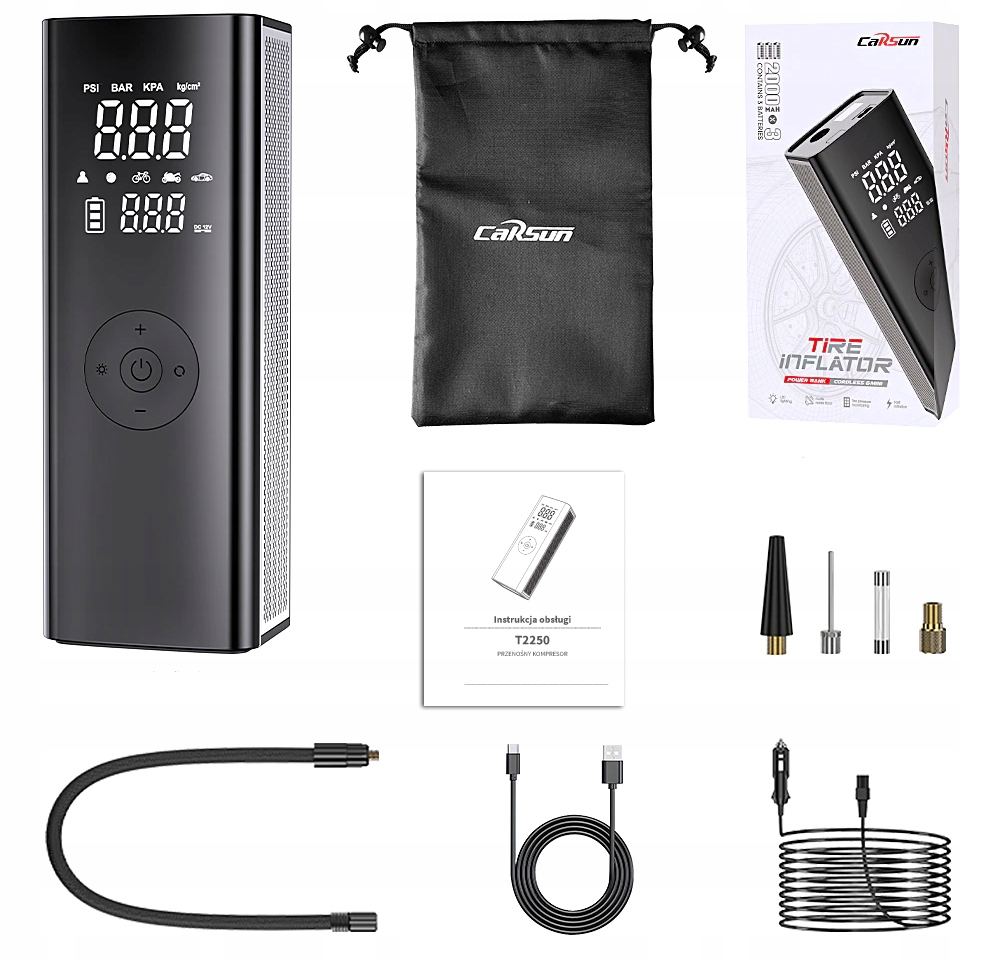 - Бездротовий РК-світлодіодний компресор із вбудованим акумулятором, модель T2250