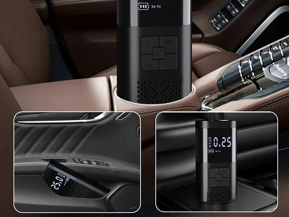 Компресор легкий і портативний, тому його легко транспортувати та зберігати. Завдяки обтічній формі та мінімалістичному зовнішньому вигляду він вписується в салон будь-якого автомобіля та не займає багато місця. Ви можете покласти його в сумку, покласти в багажник або гараж.