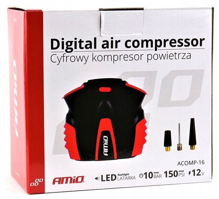 - Потужний цифровий компресор із манометром, малий розмір і висока ефективність.
