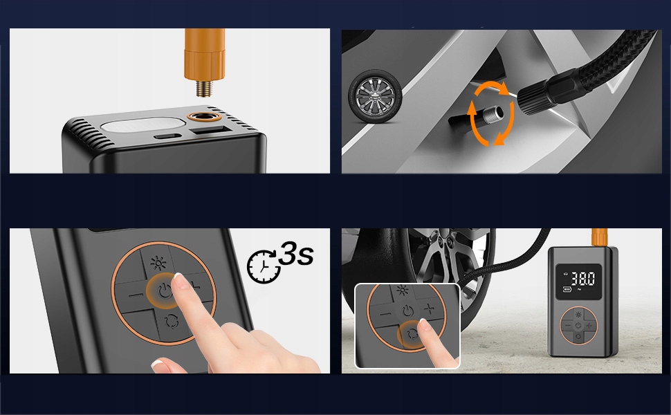 ✨⚽ Szybkie Bucking Tire: Наш портативний повітряний компресор має максимальний тиск повітря до 150 фунтів на кв. Дюйм і повітряний потік 25 л/хв. Електричний повітряний насос насосує автомобільну шину від 27 фунт/кв.дюйм до 36 фунтів на дюйм менше ніж за 2 хвилини (розмір: 195/65R15). Ви можете надути автомобільні шини, шини для мотоциклів, кульки, плаваючі колеса та надувні іграшки протягом декількох хвилин. Він накачує ефективно та швидко, заощаджуючи час та зусилля.