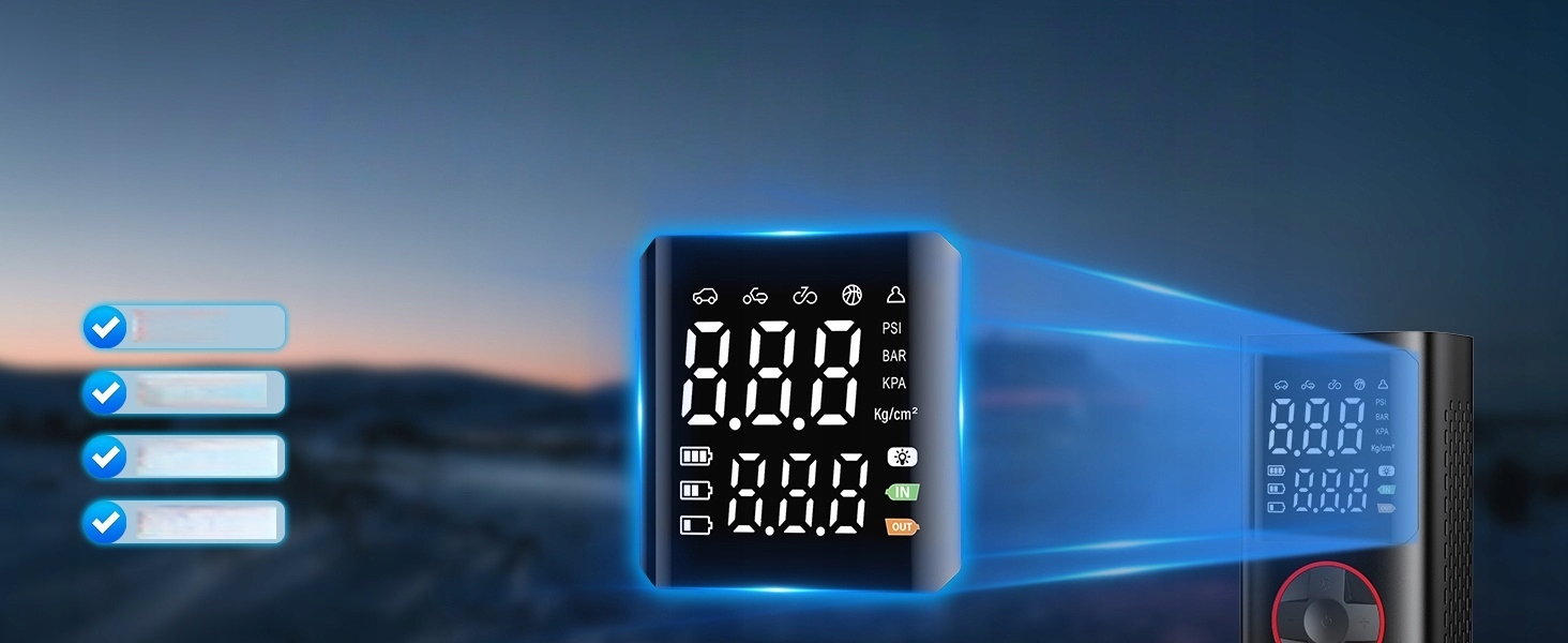 - Технологія Smart Auto-Stop – Автоматично зупиняється при заданому тиску для точного надування