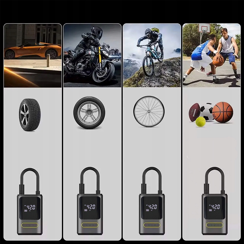 Портативний велосипедний насос, світло, простий у перенесенні однією рукою під час використання. Компактний та легкий дизайн дозволяє легко зберігання в мішку, велосипедному багажнику, автомобілі або рюкзаку.