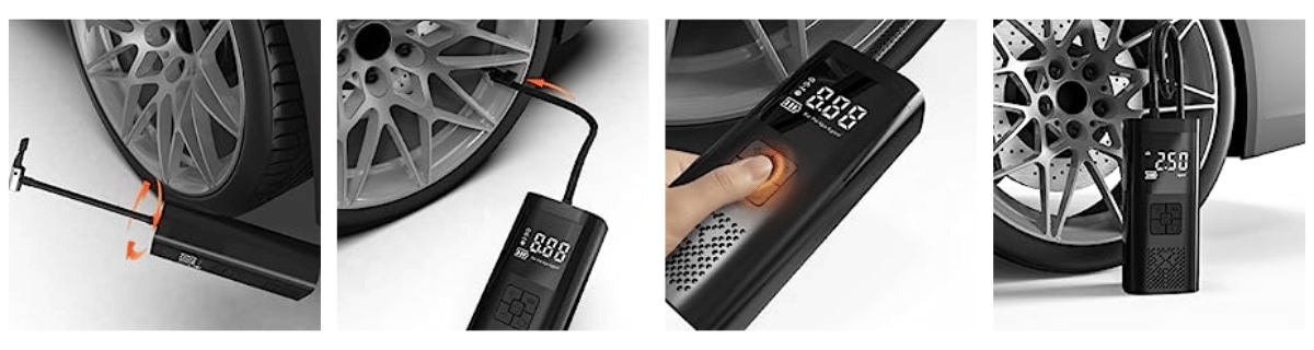 - Бездротовий насос можна використовувати для накачування шин автомобілів, мотоциклів, велосипедів і навіть дитячих колясок. Він також буде ідеальним для надування надувних іграшок.