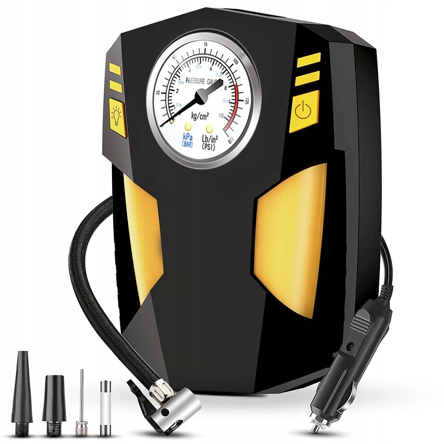 КОМПРЕСОР / АВТОМОБІЛЬ / КОМПРЕСОР / НАСОС >30 л/хв З ЛІХТАРИКОМ ТА МАНОМЕТРОМ з НАБОРОМ АКСЕСУАРІВ
