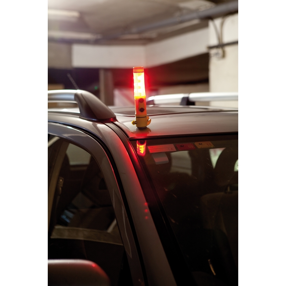 Надзвичайно корисний ліхтарик, який є зручним захистом автомобіля комплект . Забезпечуючи біле світло та червону сигнальну лампу (магніт дозволяє прикріпити його, наприклад, до кузова автомобіля), ліхтарик також має запобіжний молоток та різак для ременя безпеки.