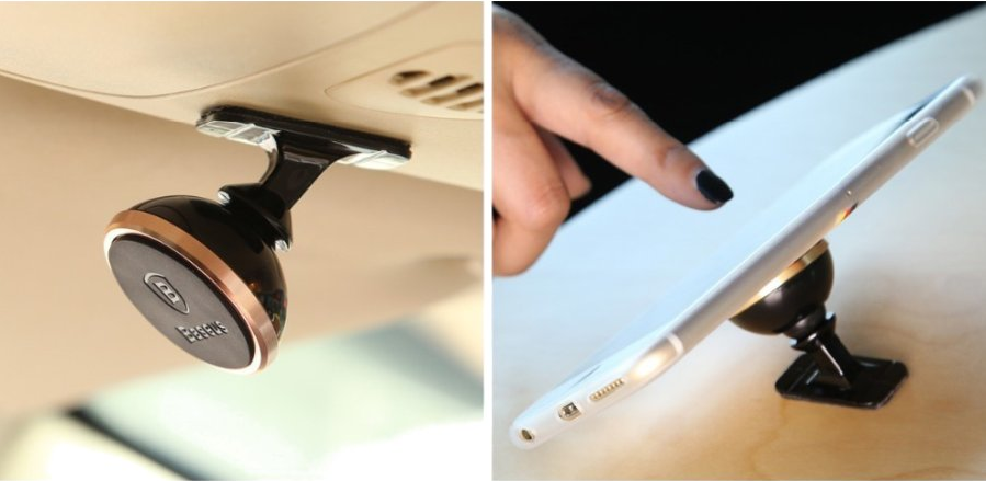 Завдяки своїй магнітній поверхні тримач дуже міцно та надійно тримає всі типи смартфонів. У набір входять дві металеві пластини, які розміщуються на задній панелі мобільного пристрою.
