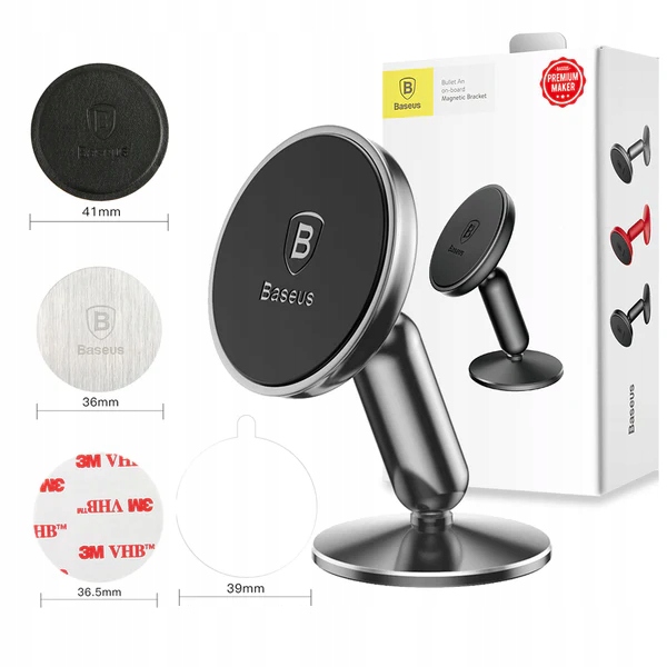 Магнітний автотримач від Baseus із серії Small Ear. Виготовлений з високоякісних матеріалів (включаючи алюмінієвий сплав), наклеєний на панель приладів автомобіля. Аксесуар оснащений 4 сильними магнітами, які гарантують стабільність і безпеку телефону. У свою чергу, завдяки невеликому розміру ручка легко поміщається, наприклад, у бардачок. Крім того, до комплекту входять великі можливості регулювання та шкіряний чохол для телефону (із прихованою металевою пластиною).