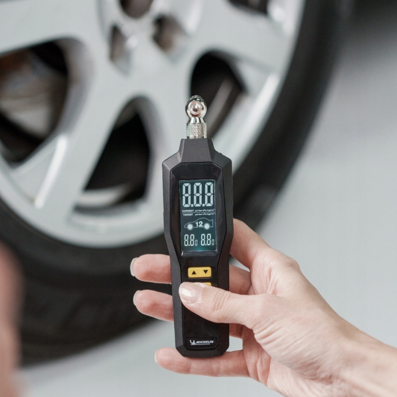 Точне вимірювання тиску завжди під рукою! Цифровий манометр MICHELIN — це сучасний і компактний інструмент, який дозволяє програмувати значення для різних транспортних засобів і контролювати тиск із точністю до 1 PSI.