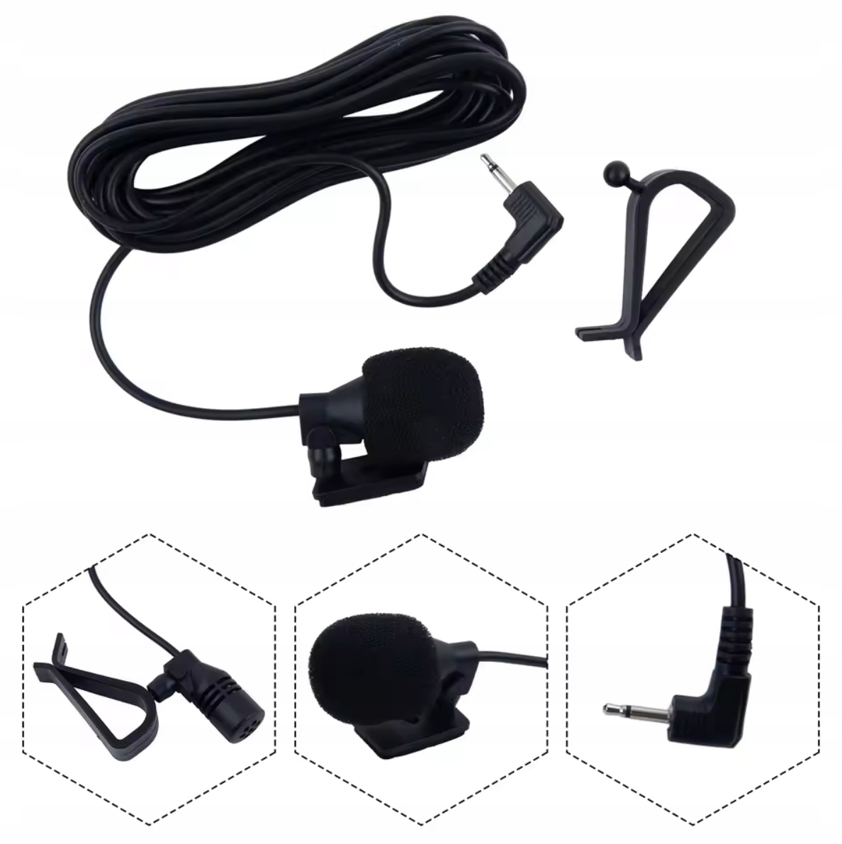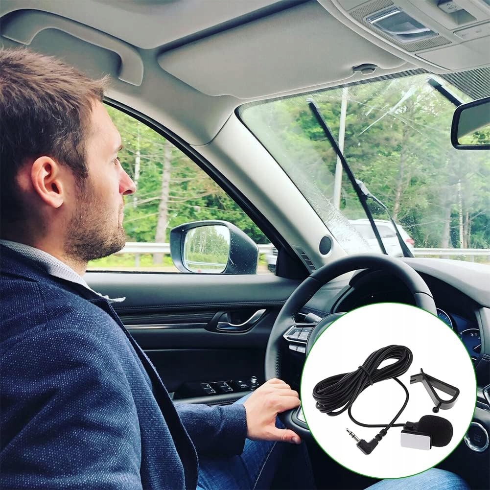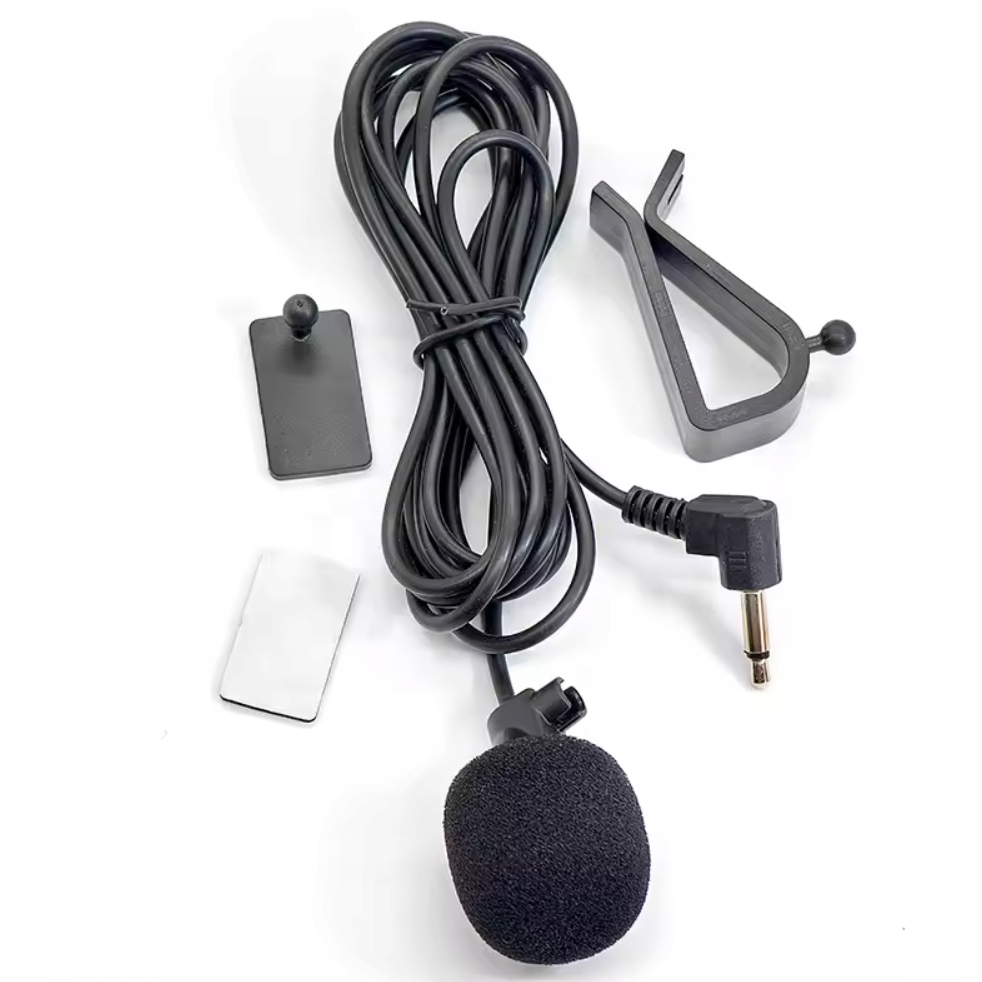 - Мікрофон має кабель довжиною 3 м, який під’єднано до прямокутного штекера діаметром 3,5 мм, який підключено до мікрофонного входу на задній панелі сумісної автомобільної радіоприймачі.