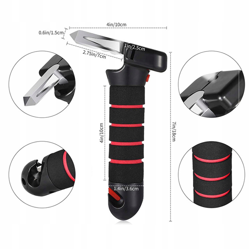 - Практична конструкція, ремінь безпеки з гострим як бритва молотком з вуглецевої сталі, неслизька ручка та захисне наголів’я.