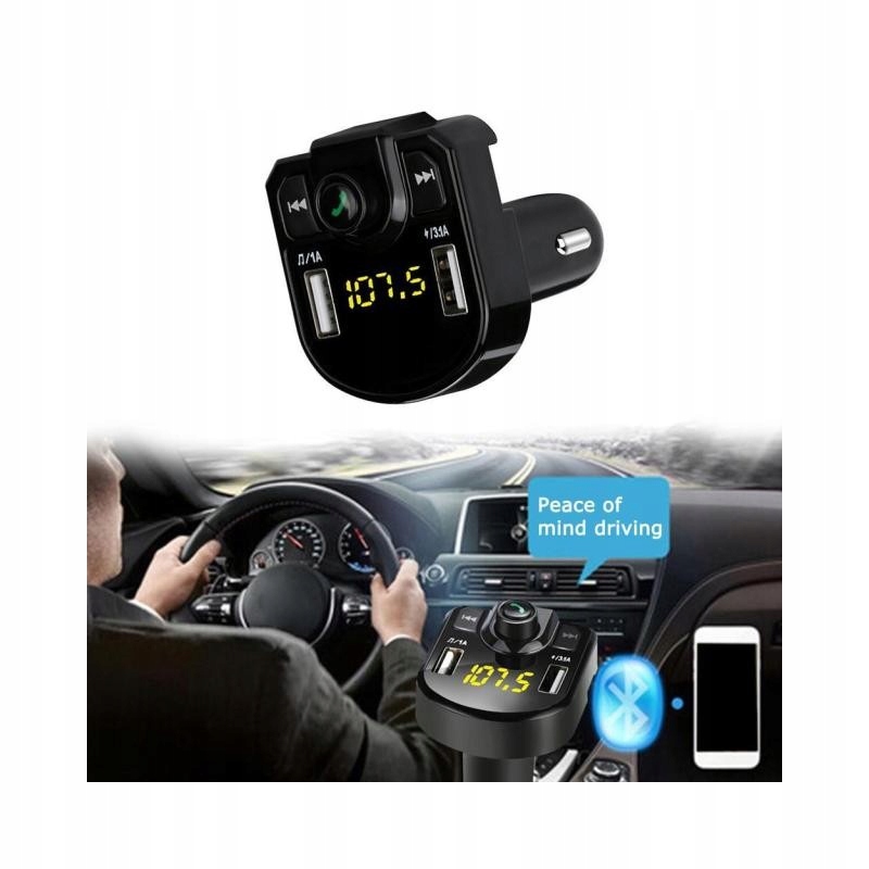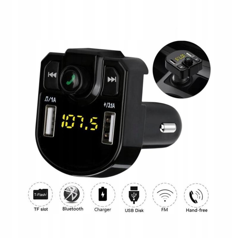 FM-трансмітер з Bluetooth - це незамінний автомобільний гаджет, який дозволяє відтворювати музику, заряджати пристрої з USB-роз'ємом і замінити гарнітуру - він має вбудований мікрофон. Трансмітер відтворює і передає музику на автомагнітолу за допомогою сигналу FM-радіо. Передавач має вбудовану опцію перемикання пісень (наступна, попередня). Він може передавати музику з мобільного телефону на автомобільну стереосистему через Bluetooth, але його також можна використовувати як гарнітуру!