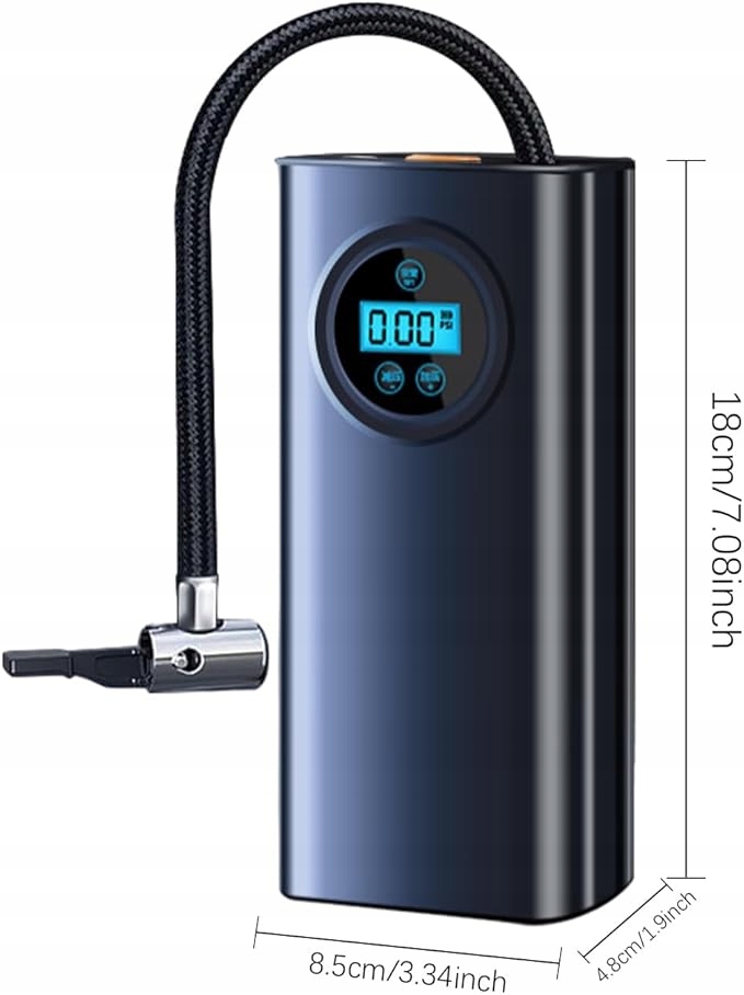- 1. Детальний РК -дисплей: Цей насос автомобіля шини оснащений цифровим РК -дисплеєм, який відображає поточний тиск у шинах та попередні дані тиску в шинах. Тиск у шинах можна ретельно контролювати екраном, що полегшує моніторинг тиску в шині. Простий у використанні: Компресор повітряної шини має чотири одиниці тиску: PSI, KPA, BAR та KG/CM². Простий у виборі потрібного тиску за допомогою кнопок "+" та "-" управління на автомобілі. Просто підключіть повітряний шланг до автомобіля і натисніть кнопку "запустити", розташовану на горі електричного насоса. Коли буде досягнуто правильний тиск, насос для велосипедних шин автоматично вимикається. Супер швидкий насос з високою точністю: портативний повітряний компресор для накачування шин використовує найсучасніший 17-циліндровий компресор, який накачує вдвічі швидше, ніж інші звичайні бездротові насоси і має на 50% більше потужності. Точність ± 1PSI. Якщо ви наносите шину нормально (наприклад, тиск 25–36 фунтів на дюйм), вона буде працювати до 2 годин. Портативний та універсальний: Наш повітряний компресор невеликий і простий у перенесенні та розміщується в рамку або рюкзак. Шланг високого тиску дозволяє легко перекачувати під будь -яким кутом, також у важких напрямках. Портативний насос шин оснащений 3 форсунками, підходить для різних типів велосипедів, мотоциклів, автомобілів, кульок, плавальних коліс тощо.