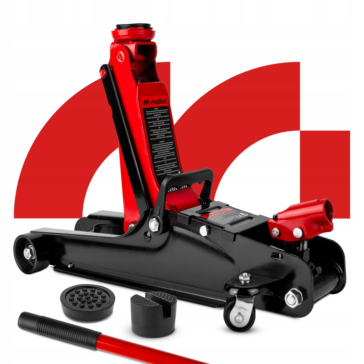 Підйомник MasterJack вантажопідйомністю 2500 кг - надійний інструмент для обслуговування легкових автомобілів та позашляховиків. Міцна конструкція та мінімальна висота підйому 85 мм роблять його ідеальним для транспортних засобів з низькою посадкою. Масивні задні колеса полегшують пересування по нерівній поверхні, а поворотні передні колеса на шарикопідшипниках забезпечують точне маневрування.