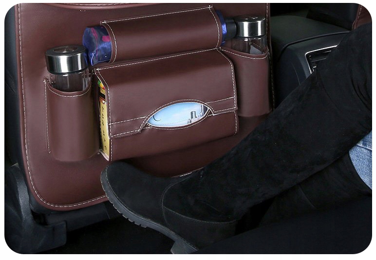 Органайзер виготовлено з міцного водонепроникного матеріалу, який не пошкоджується та не намокає. Його легко почистити вологою ганчіркою, тому що екошкіра не вбирає бруд. Але це ще не все. Полиця, яку можна використовувати в двох положеннях, витримує до 15 кг. Завдяки цьому ви можете розмістити на ньому все, що завгодно, наприклад напої, необхідні під час подорожі.