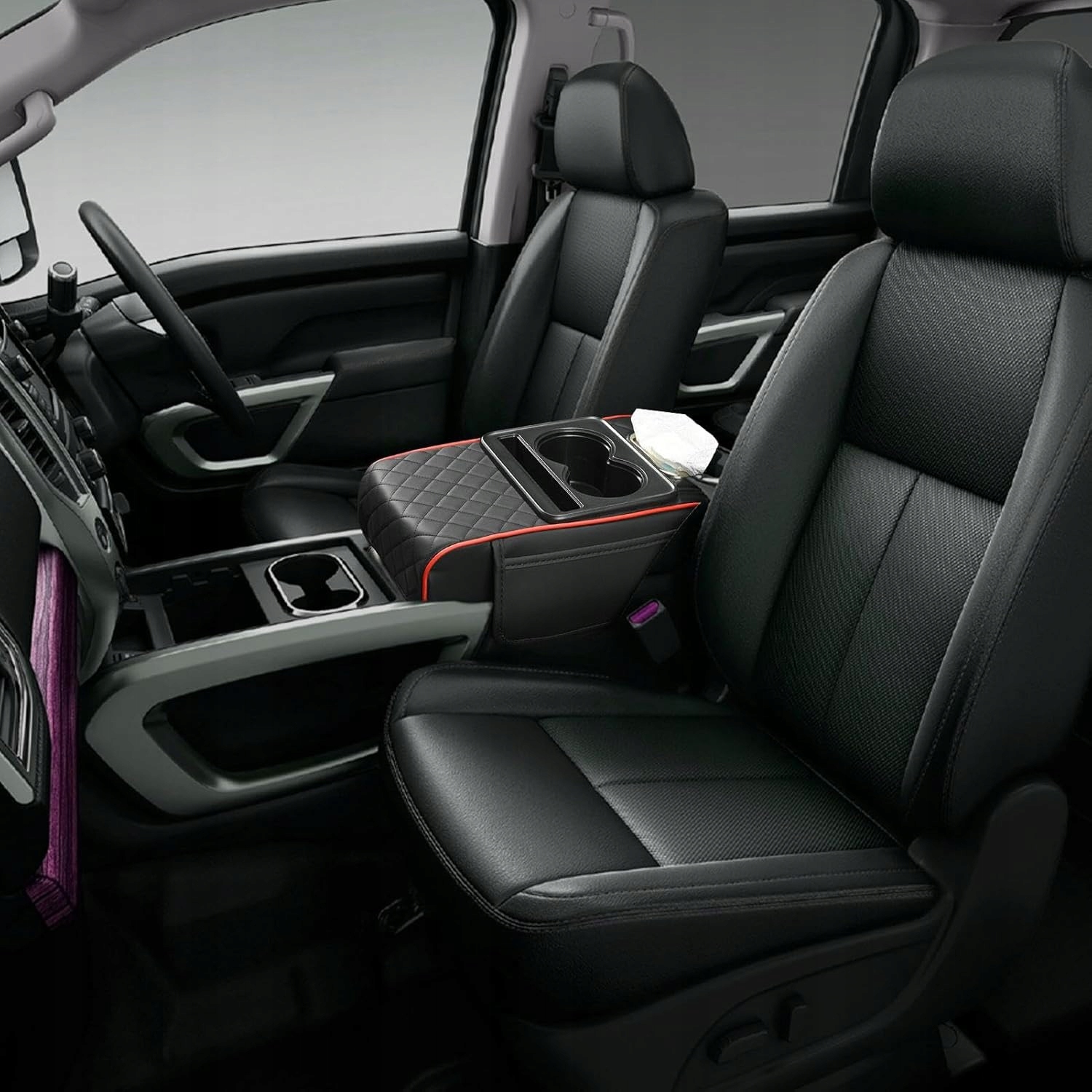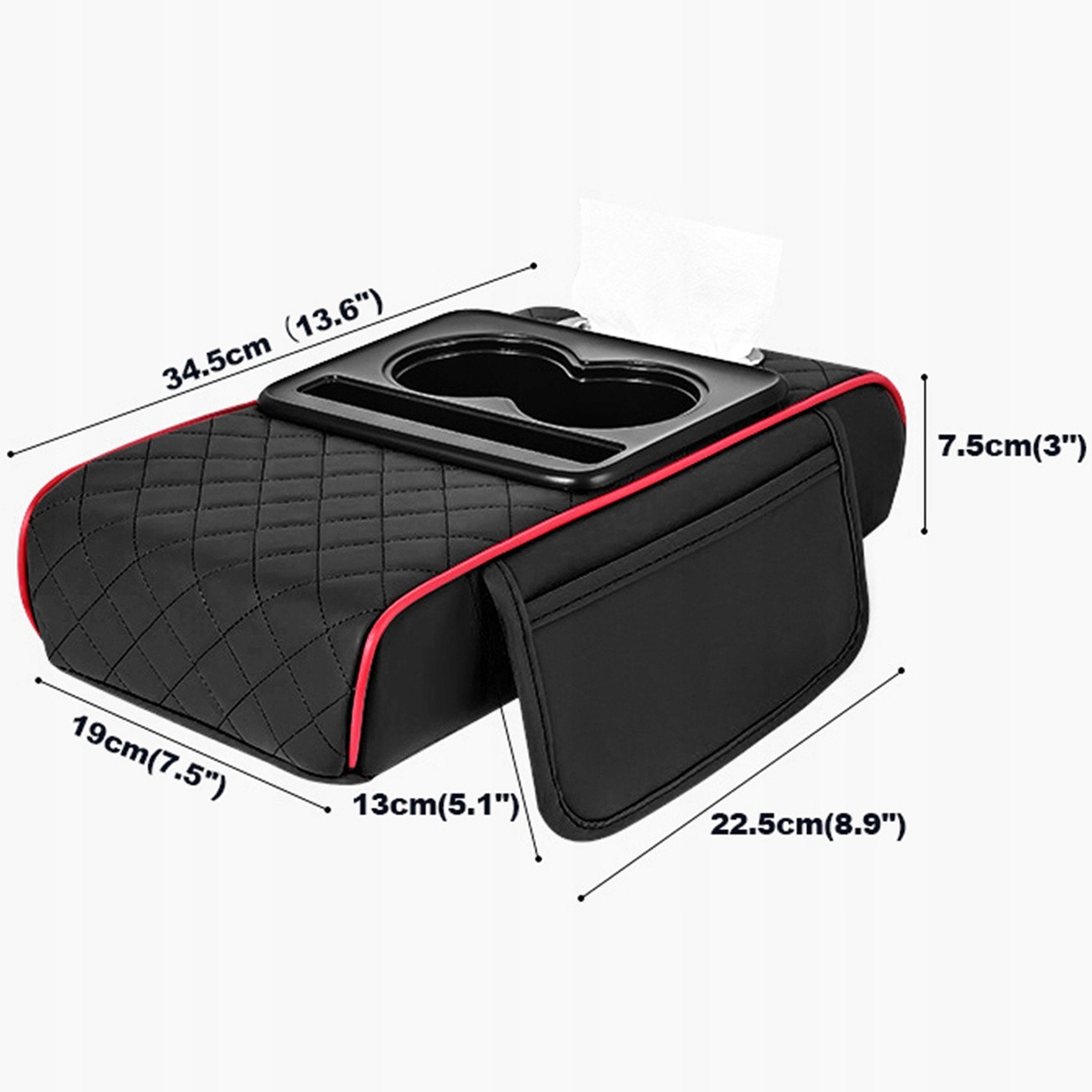 🚗Багатофункціональний дизайн: цей практичний підлокітник має вбудовану коробку для серветок, підстаканник, слот для мобільного телефону та бічні кишені для зберігання, що забезпечує легкий доступ до серветок, чашок, мобільних телефонів, карток, ключів, ручок та інших дрібних предметів.