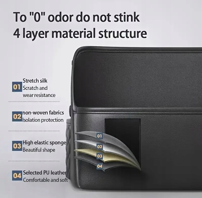 Цей надзвичайно практичний і багатофункціональний органайзер є елегантним рішенням для зберігання аксесуарів у салоні автомобіля. Це забезпечить безпеку, порядок і комфорт під час руху.