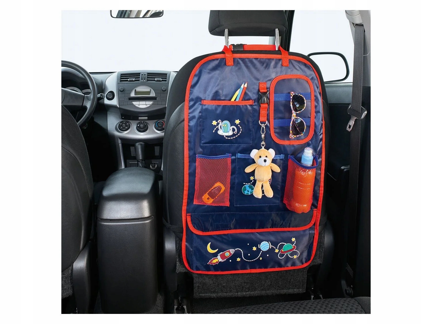 Органайзер захищає спинку сидіння від бруду та його легко чистити, що полегшує утримання вашого автомобіля в чистоті та порядку. Він виготовлений з міцного матеріалу з посиленими краями, що гарантує його довговічність. Завдяки кишеням у нього можна помістити багато дитячих речей, наприклад іграшки, кольорові олівці, напої чи окуляри.