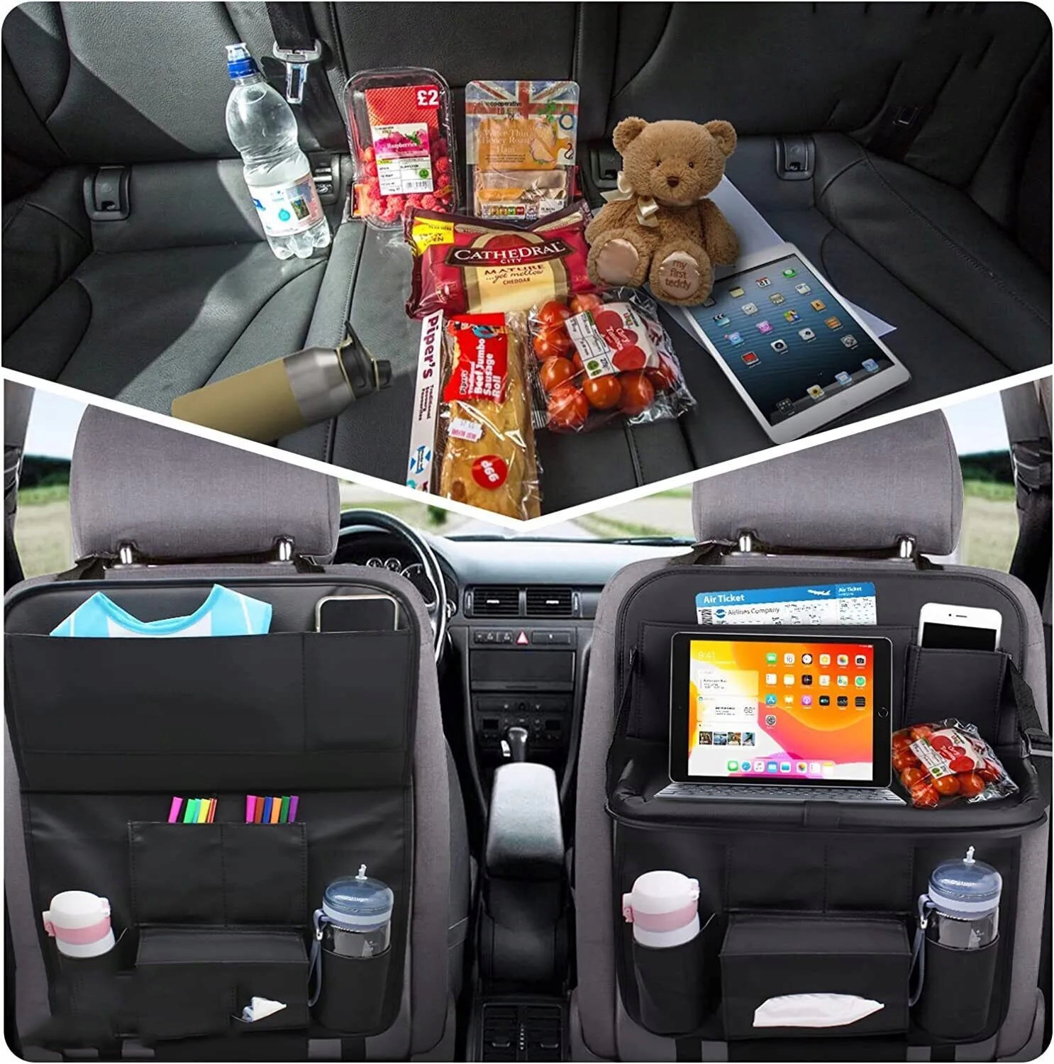🚗🚗🚗【Водонепроникний і легко чиститься】 Органайзер для автомобільного сидіння виготовлено з високого - якісна шкіра PU з чудовими водонепроникними властивостями та хорошою довговічністю. Зробить ваш автомобіль дуже розкішним! Крім того, він захищає спинку автомобільного сидіння від пилу, стирання та бруду. Він зберігає сидіння чистим і захищає його від подряпин, а також може захистити оббивку вашого автомобільного сидіння від розливів, плям і бруду.