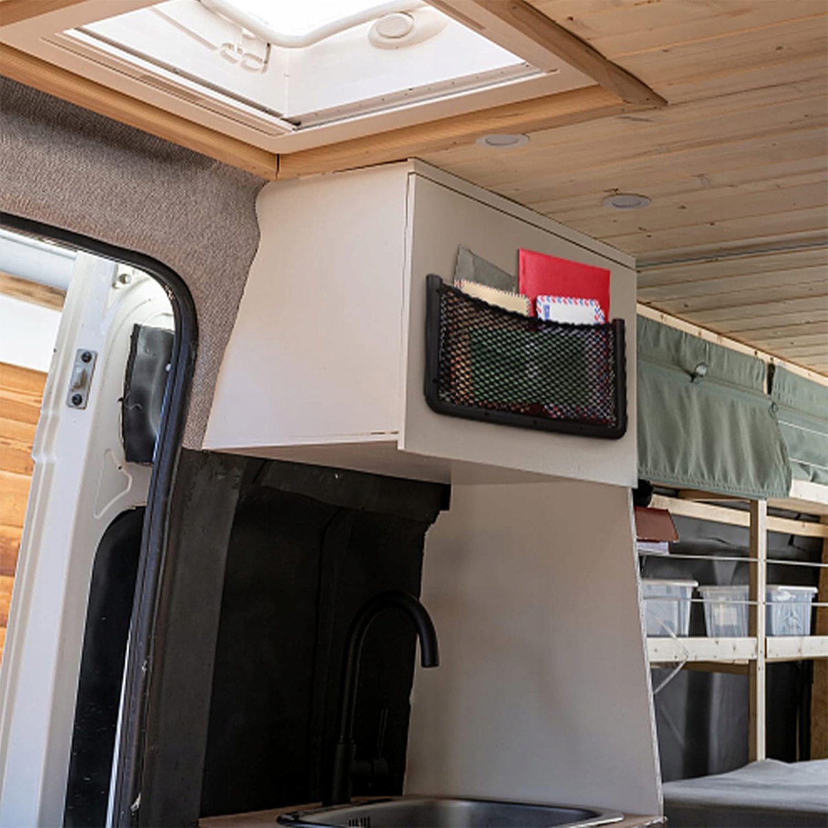 Якщо ви шукаєте місце для зберігання, ця розтяжна сітка — це рішення для вас. Встановлений на стіну, він може містити електроніку, книги, пляшки з водою тощо, не займаючи дорогоцінного місця у вашому транспортному засобі для відпочинку.