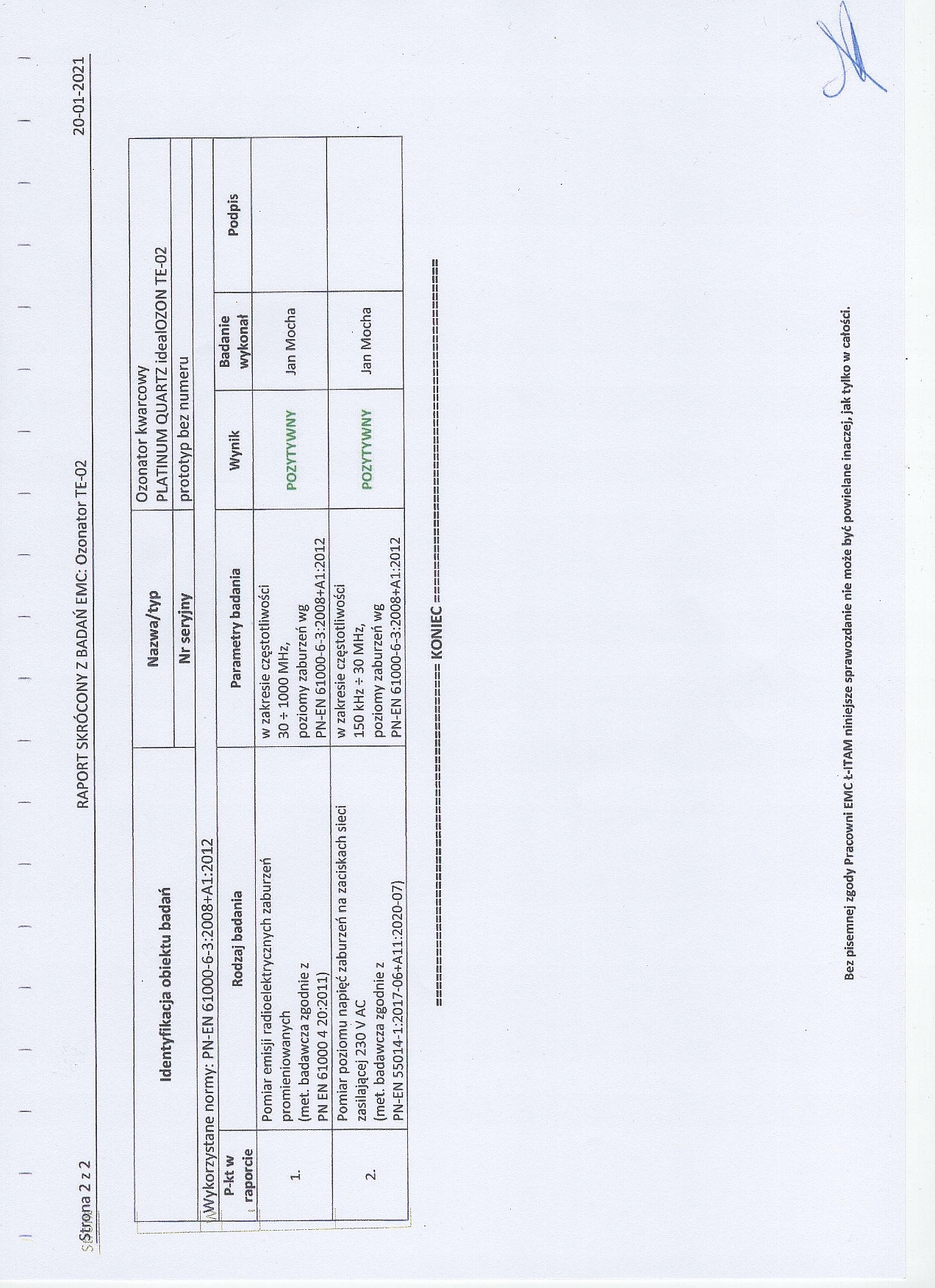 - Тестуваний продукт в Інституті технологічних та медичних апаратів itam Zabrze