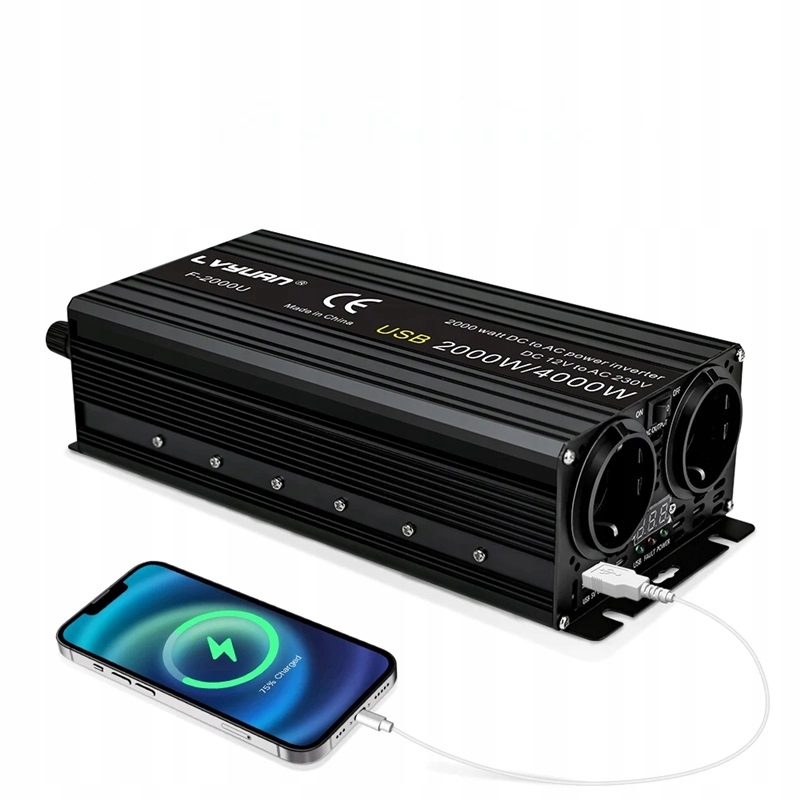 АВТОМОБІЛЬНИЙ ПЕРЕТВОРЮВАЧ НАПРУГИ ДЛЯ ПОДОРОЖІВ USB 12V НА 230V 2000W 4000W EU