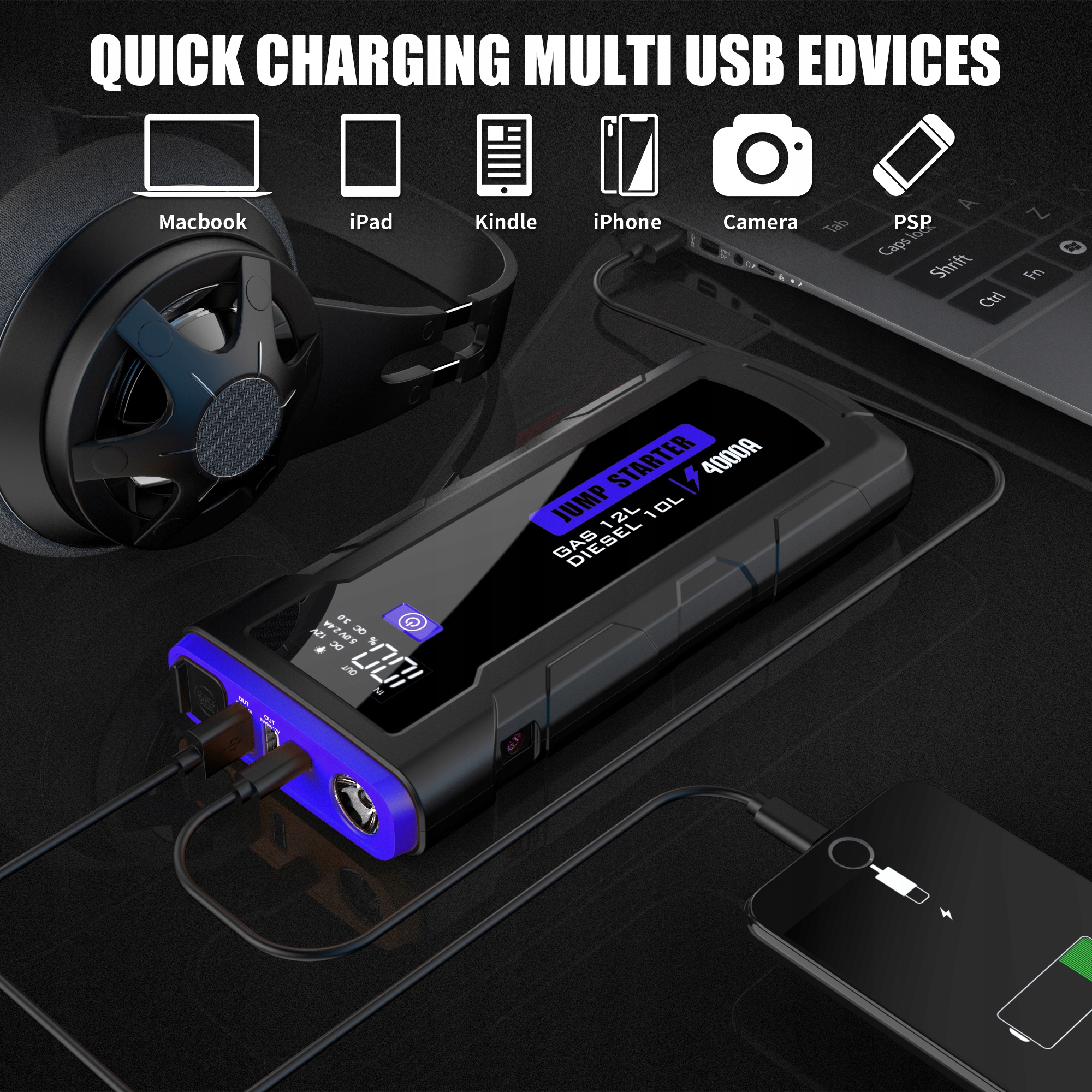 Jump Starter 4000 оснащено двома портами USB для заряджання зовнішніх пристроїв.