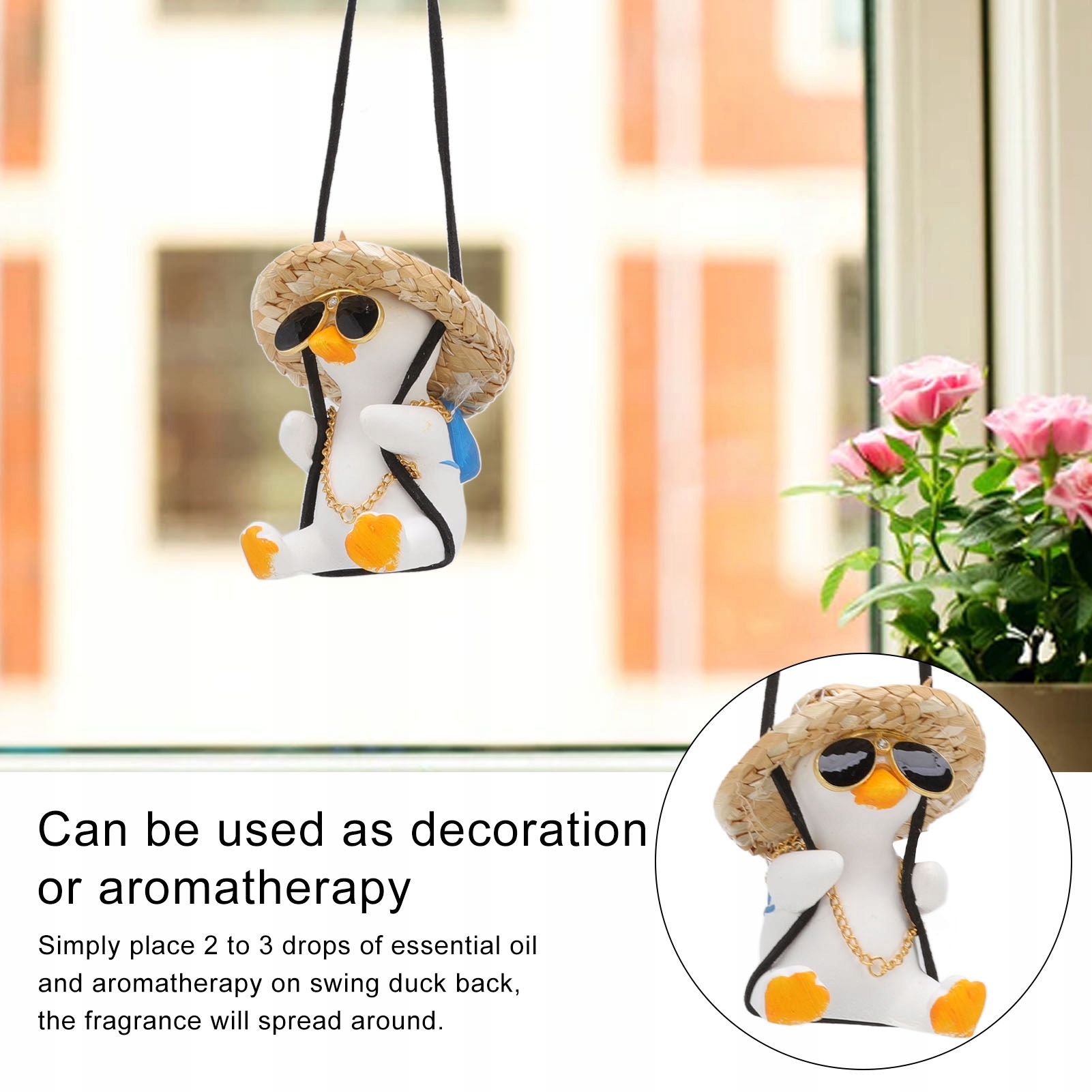 1. [Функція прикраси або ароматерапії] Чарівний кулон автомобіля з качкою може використовуватися як прикраса або ароматерапія.
